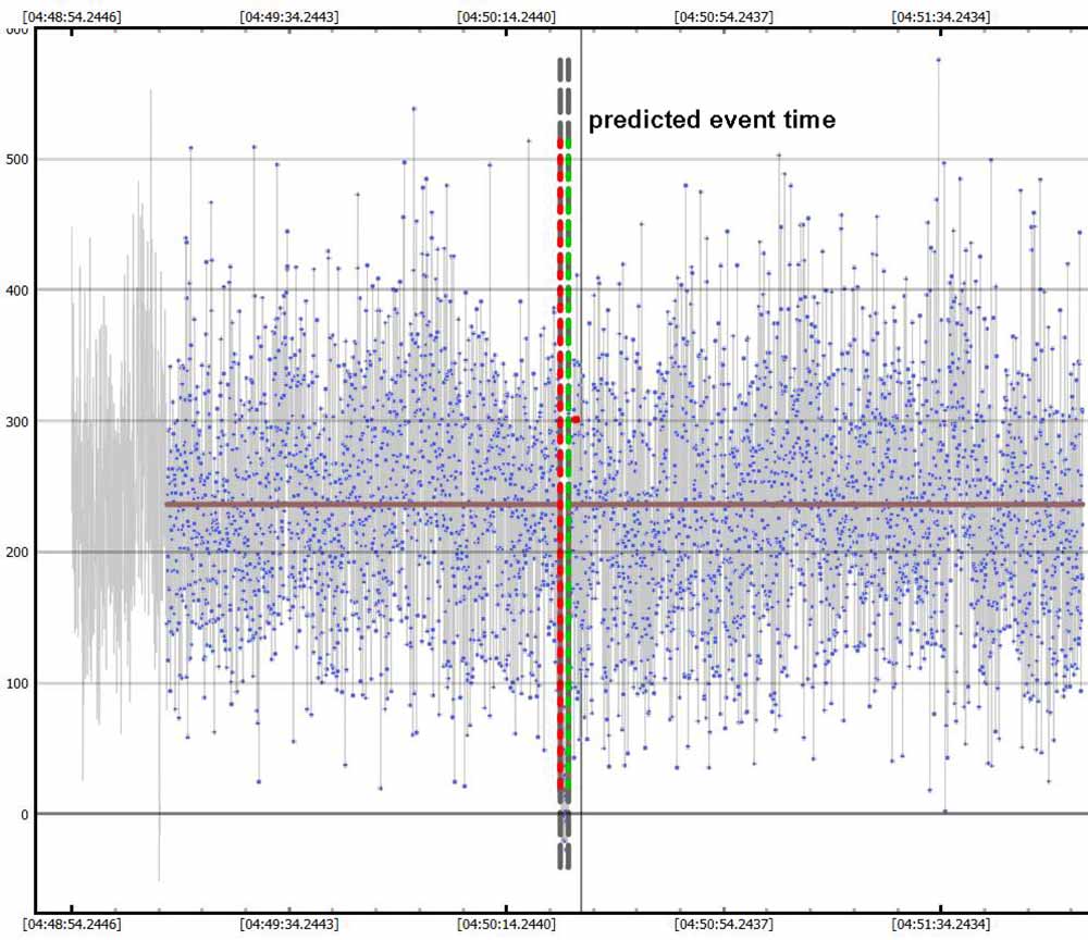 Zoomed in. Very good S/N and accurate timings on this one. Happened about 1s early. |