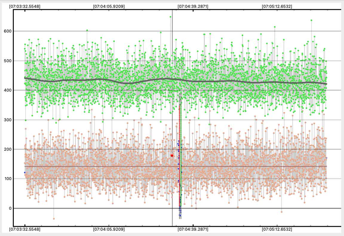Not impossible Karl might have a very short event but it would have to center at 7:04:35 to be considered a possible valid event. If his dip is centered elsewhere the odds are very high it's just noise.