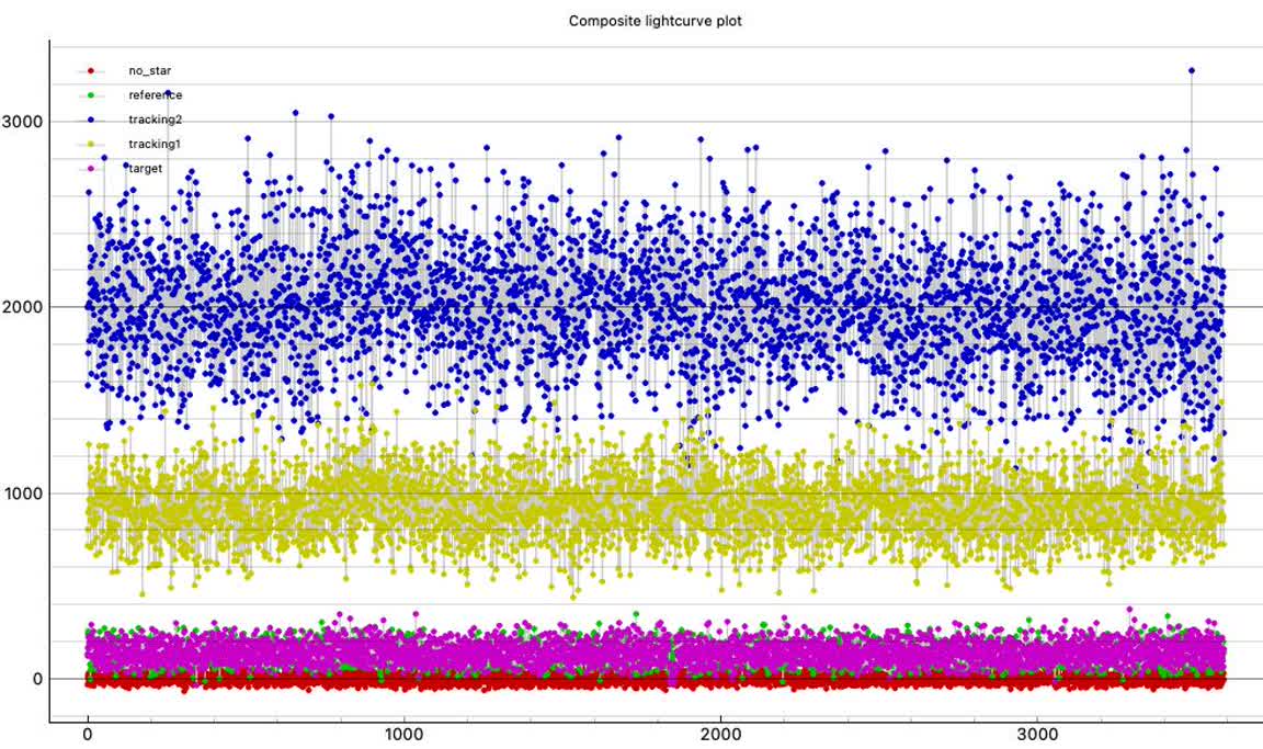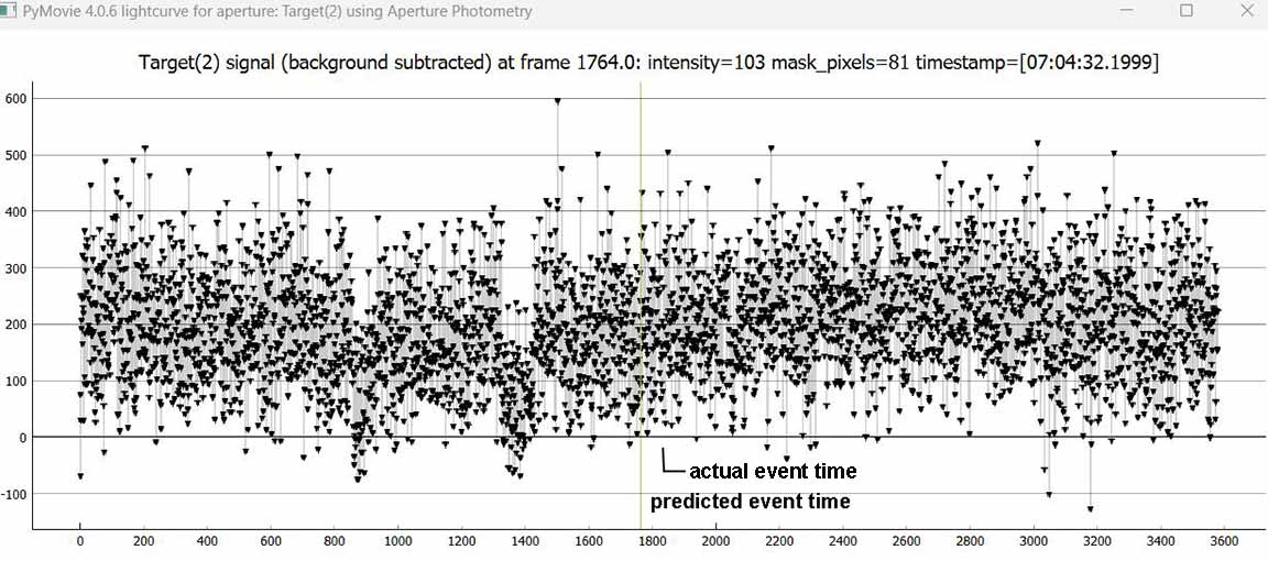 3/15/26: Reduced. Got a definite 0.24s event in good agreement with Kirk's event time. A full 3 seconds after the predicted time. That's 6 diameters of the asteroid. That's a lot, and so we were very lucky that nearly all of that big error was in the along-track direction. A little were in the cross-track direction and either of us could have had misses.