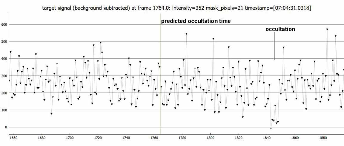 Kirk from Deerfield Drive, me from my usual Santa's Village site. Both in Scotts Valley, and Karl from home, all got recordings. We agree there was no occultation visually at the time predicted, but I thought I saw a dip a few seconds later.