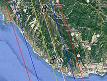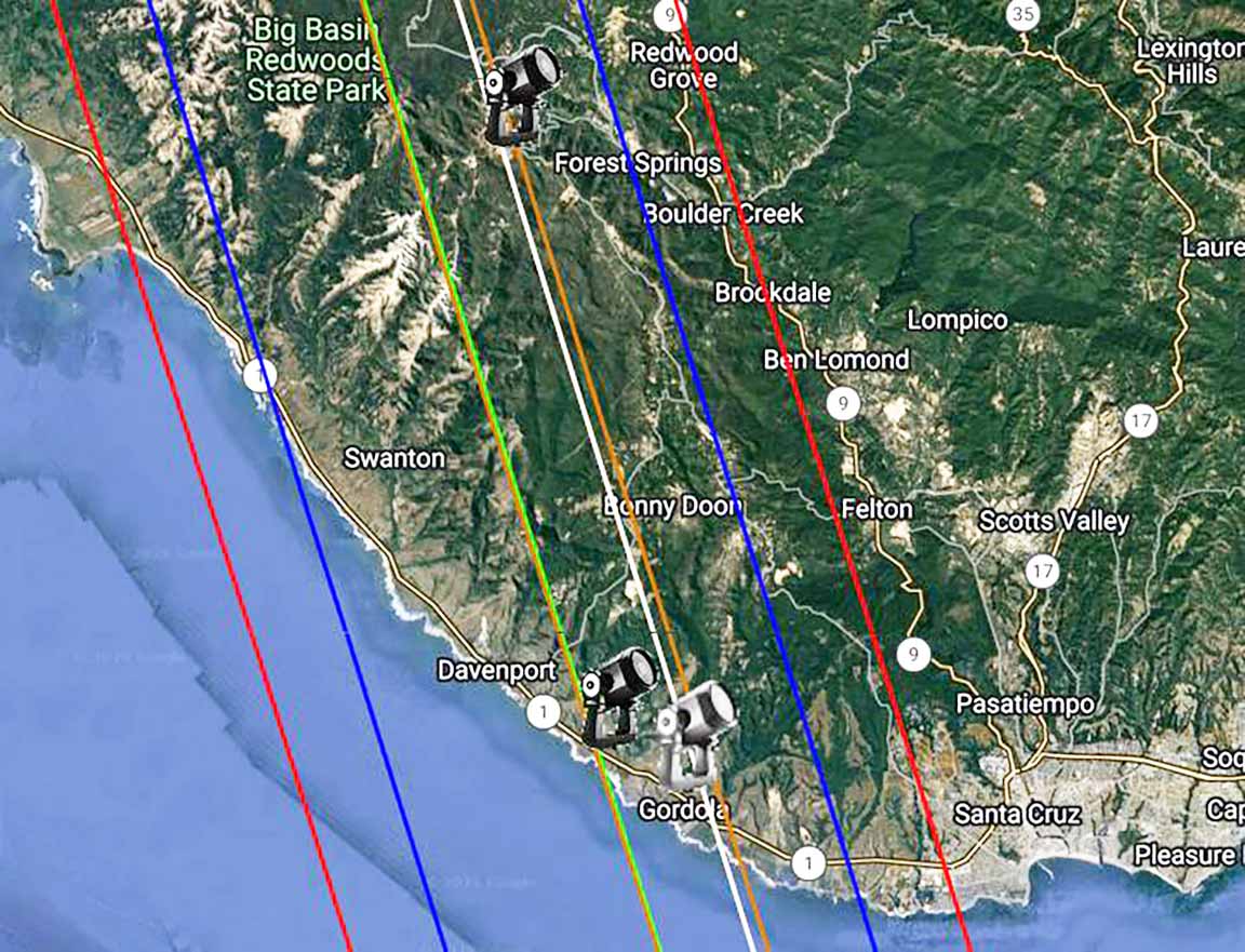 This is a faint asteroid, but the sky will be dark, the altitude good at 59 degrees, and the duration long at 1.0s so it should be decently do-able. The path is vertical, and to get above fog will require driving up to Locatelli Meadow to get deep enough into the path. Or, much much easier, use my east side Wilder Ranch spot on Hwy 1, if fog stays away. The path doesn't go near Aptos or Karl.
