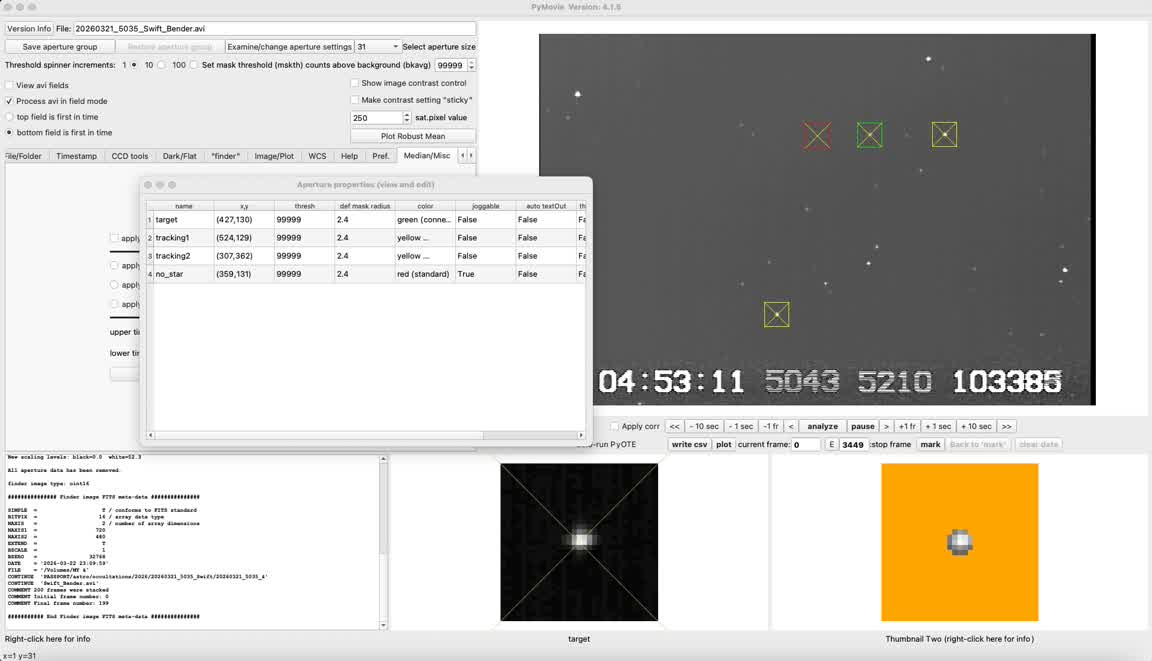 Recorded. Looked like a short positive. got a 0.3170s clear event for Swift on Mar. 21, 1x on Quail Hollow road. A little later than the predicted 04:54:06 for my location.