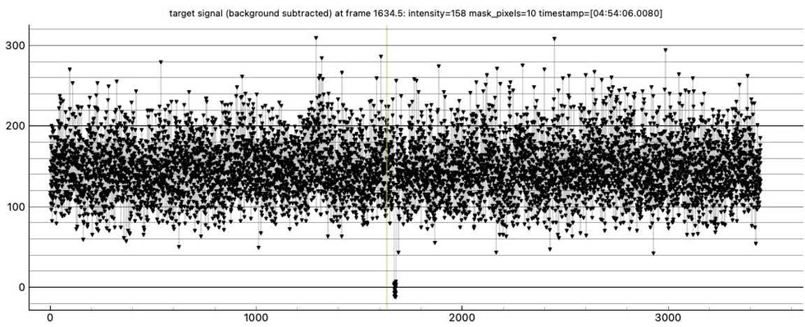 A bright occultation, lasting long enough for good cadence with short integrations. The path is through the SC Mtns. It's just before another bright occultation also through the SC Mtns