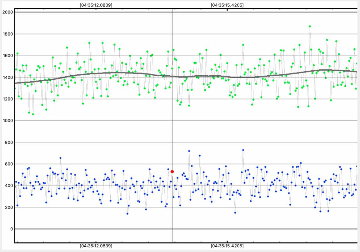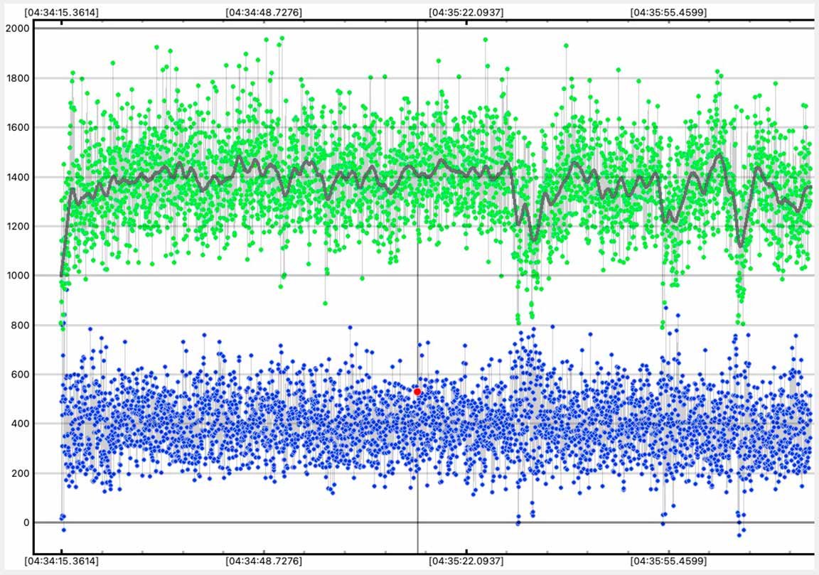 RN: This looks like a clear miss to me, on his data. Strange; we were on the centerline and very high odds of a "hit".