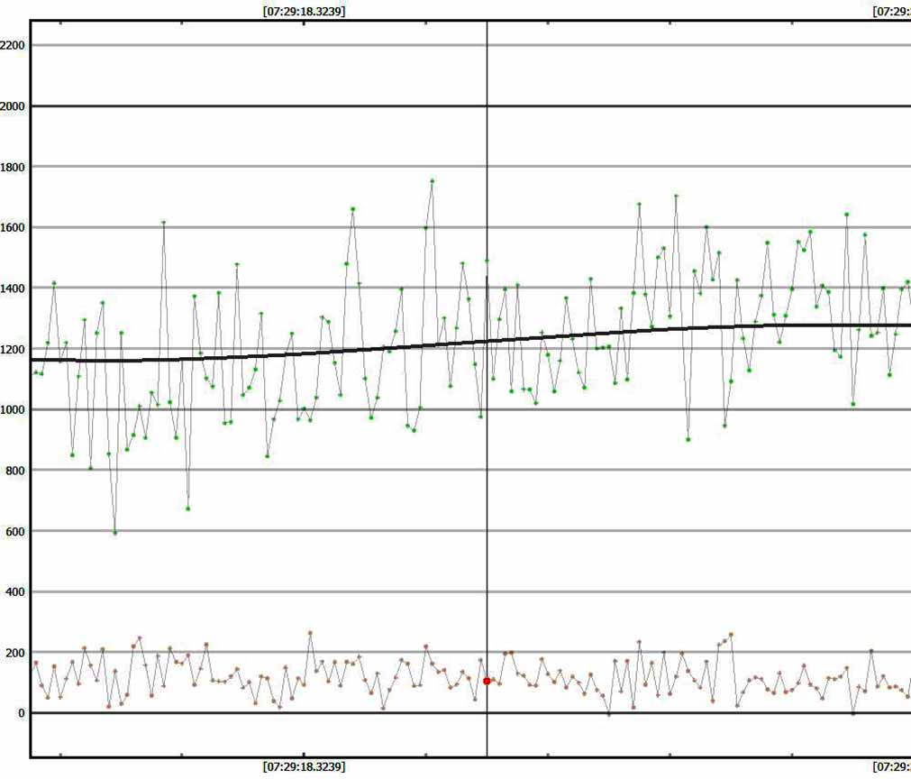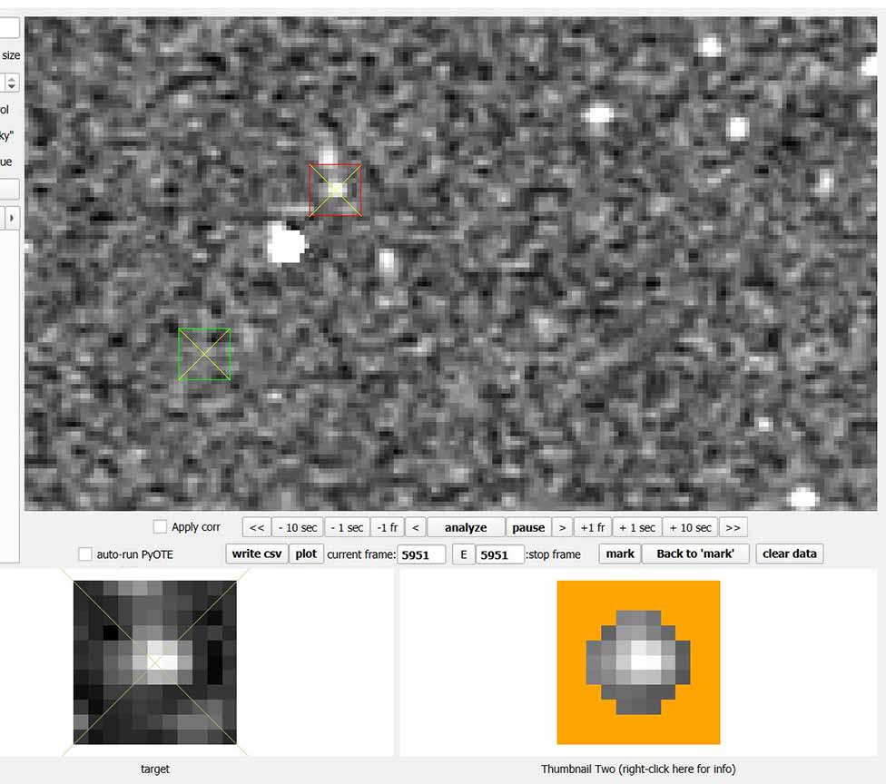 PyOTE says the minimum detectable duration for a 2.0 mag drop is 1.34s, but the maximum duration was 1.5s, so this looks like an event just too hard to make any judgment. A "no observation". Star just too dim. There is no suspicious dipping at the predicted time.