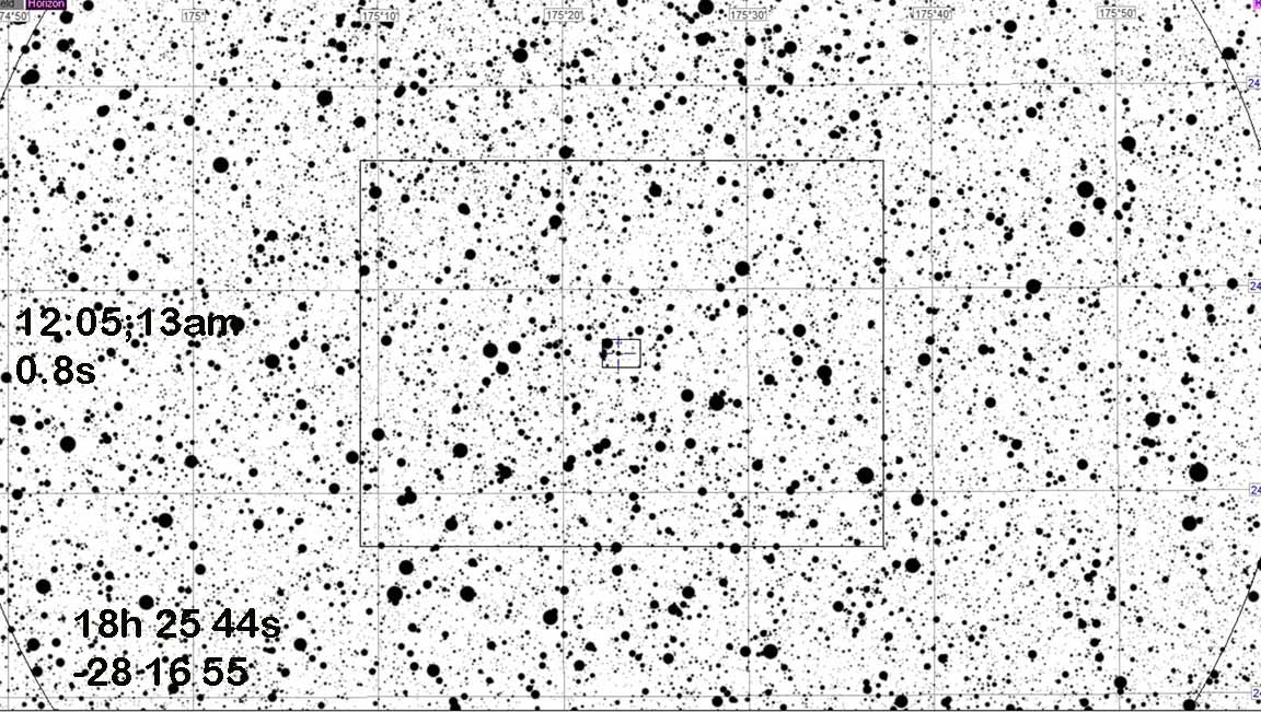 This is a good event, should be easy. Best for Karl, but do-able from the BD air field and also Scotts Valley. Wide path. Dur=0.8s, B-V=1.3 magnitudes.