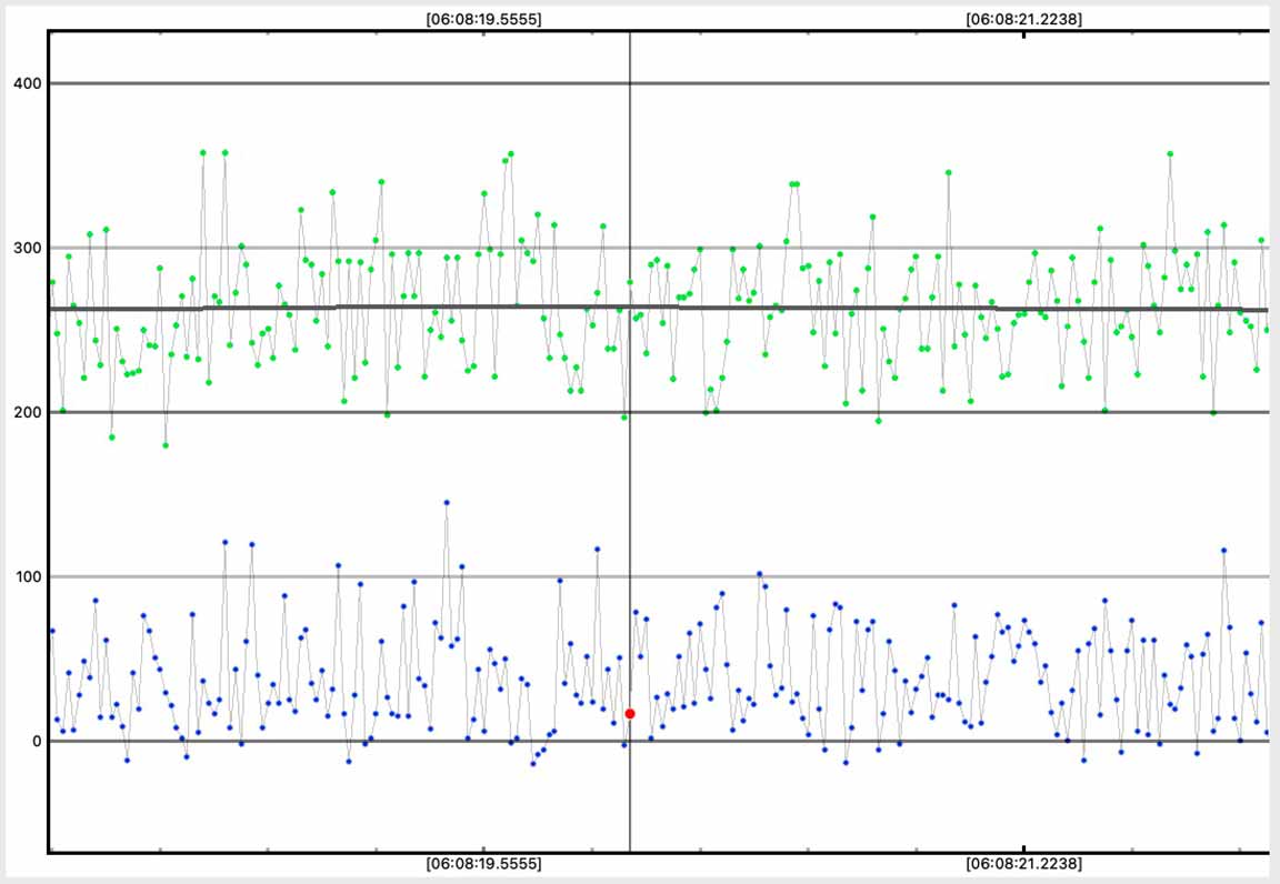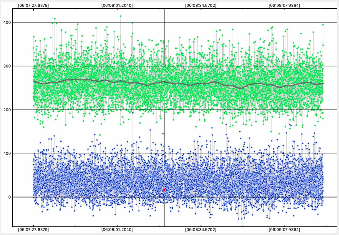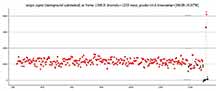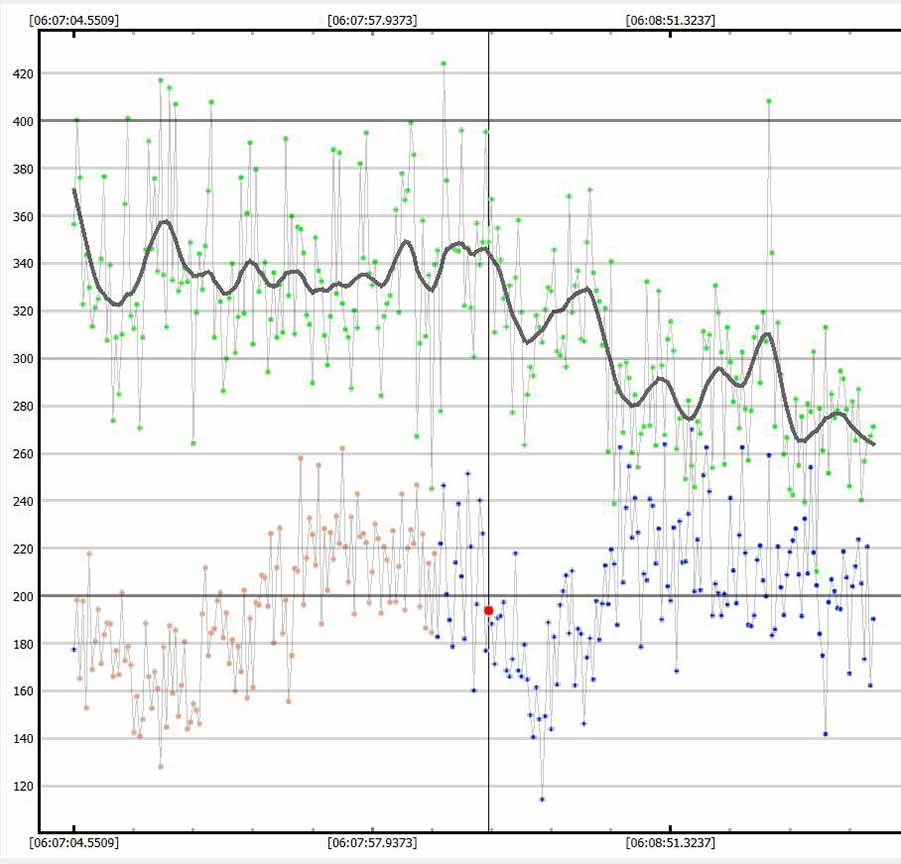 The only suspicious event possibility I see, is about 6:18:19.7 or so, with several consecutive points at ~0. |