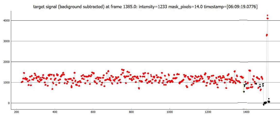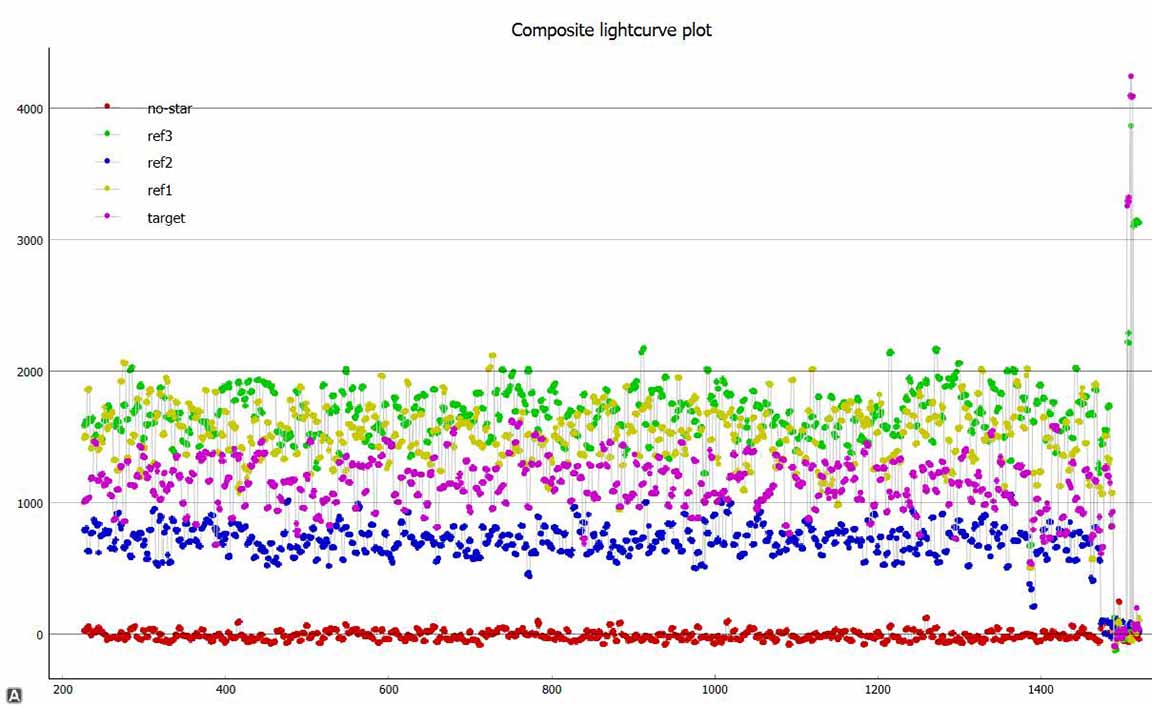 The target light level stays above zero, which suggests a miss. But the "sky" level is not plotted and should be. |