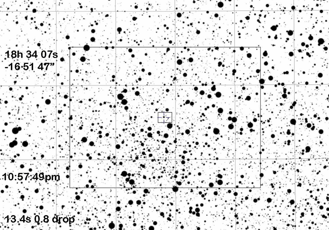 I was mostly pre-occupied with learning to use the AM3 mount with Will Glass, and time snuck up on me. With 20 min to go, I realized the occultation was soon, and dashed about to get the scope put together and aligned and get on-target. I could not reconize the star field until I instead did a Go To NGC 6654 and then star hopped up to the target area, just in time to get the recording started, but not enough time to optimally focus and set the brightness. However I did get a recording, and will see what I can pull from it.
