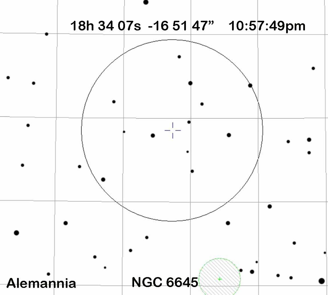 Very nearby is the 8.5 mag open cluster NGC 6645. This is a good GoTo target to make sure your 2-star alignment is correct.