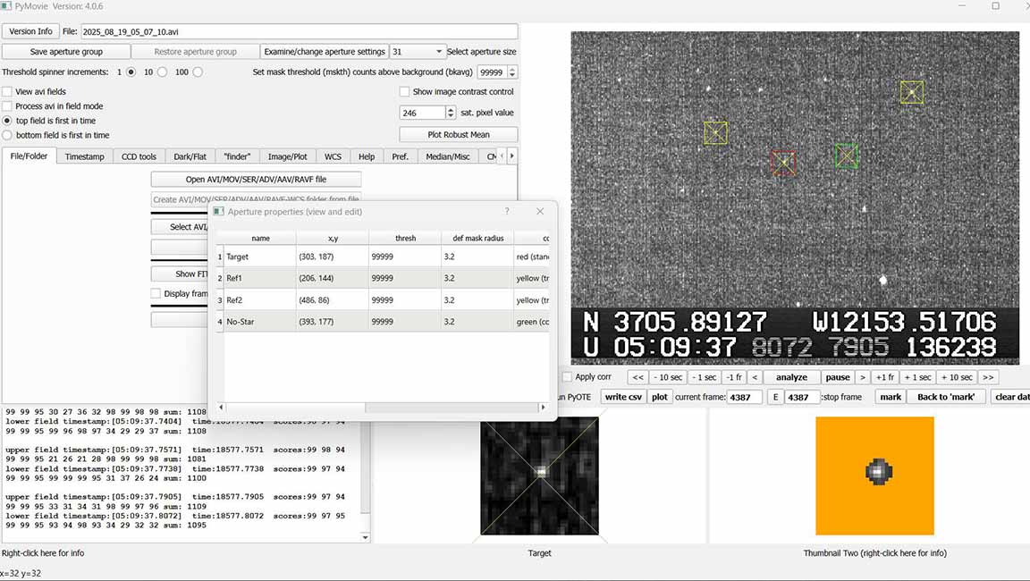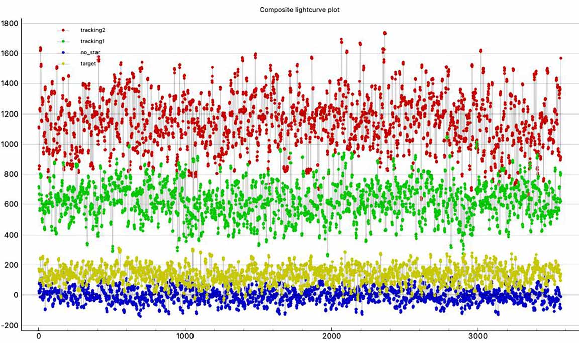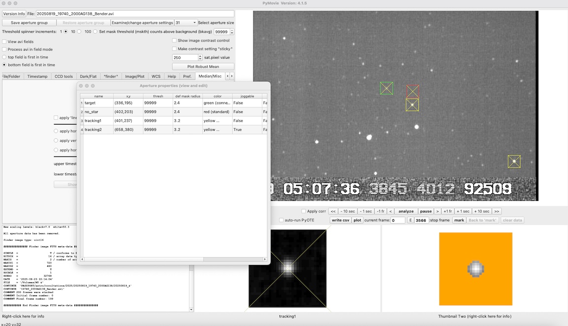 Reviewing the data of Kirk and Karl - it is Kirk's miss that is most anomalous, since my event was almost 1s and Kirk was only about 2km cross track closer to the southern limit than I was. But if the asteroid is oblong it might give a short event for Kirk and still a miss for Karl. But both had suspicious single point drops suspiciously close to my event in time. Norm suggested "we'll see how it plots up". I'm submitting my report on 10/31/25.