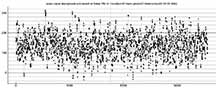No apparent event for 2000 AG138, 8x from home. Noisy light curves. I tried several size masks but no clear event. With some sizes it found an event 24 seconds after predicted, but with 1-0.5 NIE sigma. There are some low points near the predicted time, but there are other points as low or lower throughout. A mask size of 2.4 gave the deepest points near predicted time, but PyOTE could not find an event, saying "No event fitting search criteria could be found.", even with trimming nearer the predicted time. Max predicted duration was 0.53s, and PyOTE detectability tool reported an event of duration 0.540s would likely be detectable. Maybe not a miss since you got an event and I was only 0.6km (RN - no, not 0.6km. I was 1.7 mi or 2.7 km cross-track north of KB and deeper into the path. My home was 0.6km track north of KB, but I did not observe from home) away, but my data is too noisy to tell.