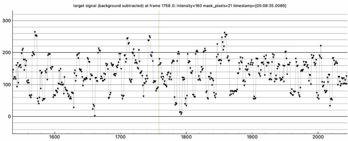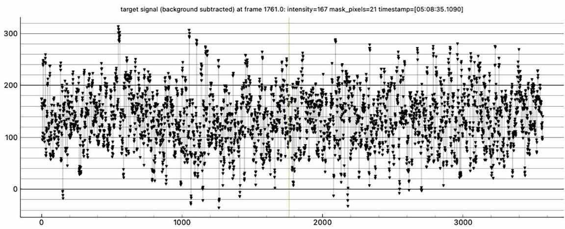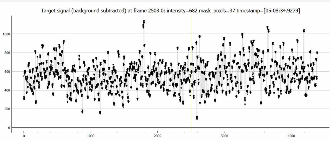 I set up on the north side of Westlake below UCSC. Conditions were very clear and clean air. Alt=17 however is still not great, and I'm looking south over Santa Cruz. I played with gamma from 0.80 to 1.00 and settled back on 1.00. I played with recording brightness, sky contrast with target was still low at all settings at 8x. I worried 16x would only have 1 single drop and not pass the detection. At 8x I could get 3-4 points in the occultation and hopefully get a detection, which I did. However, the NIE sigma was only 2.1, so barely passed the test. But, it was less than 1 sec from the predicted time, and regardless of min=6 points or min=3 points, the event was detected with identical times and confidence.