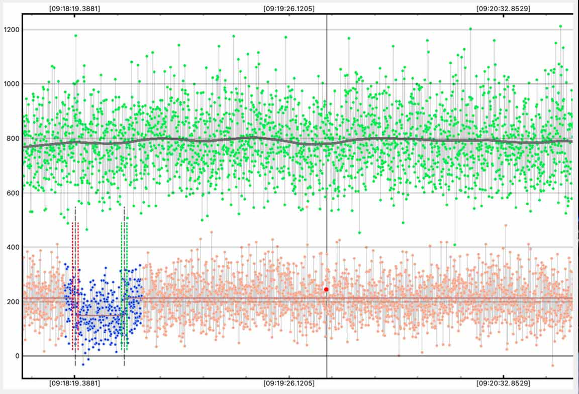 KIrk and I were about 6% of the diameter of Sylvia apart, in tracks. 6% of the duration time for Sylvia is .06 x 15s or 0.8 seconds. But my possible 2nd event is 3.7 seconds. What are the odds that I'd have a valid 3.7s event only 0.8s away from a clear miss? Very unlikely. It would take a very oblong asteroid aligned favorably for me and missing Kirk. I conclude that my 2nd event is not credible.