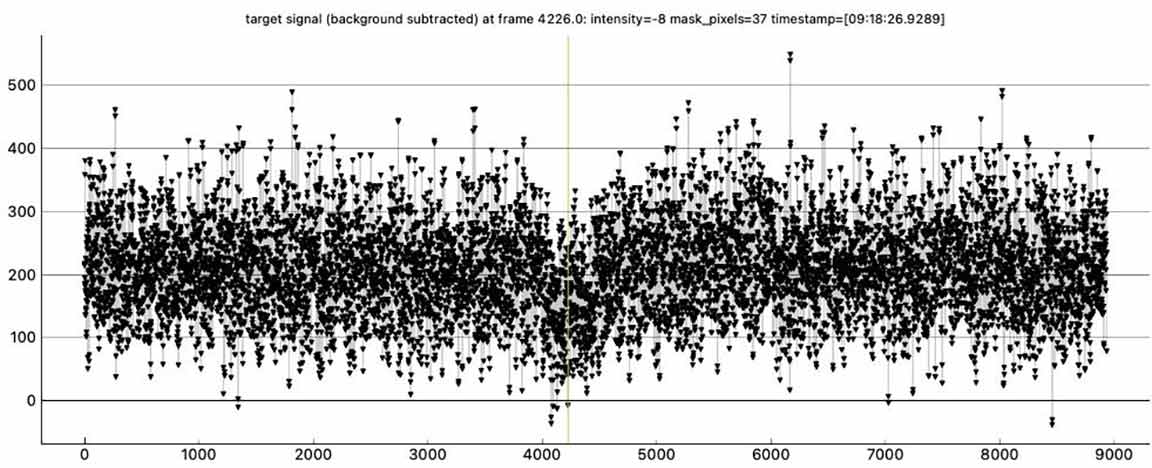 Kirk's data convinces me this is just a "noise event" despite being detected and being of reasonable duration and position relative to Sylvia. Kirk had a clear miss at this time and only 6% of the diameter of Sylvia away from me.