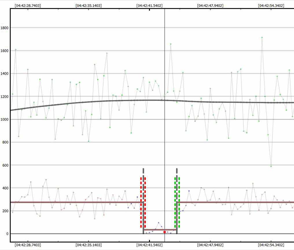 The NIE test is actually worse now. The ref star close to the target is fainter than the original ref1 star, and trying to get the ref star and target to do the artificial dips at the same time didn't work as well as hoped. Minimizing the metric still left the smoothed curve not really capturing the short ~2s drops as tracking moved stars across the dark bar. Timing acccuracies are worse below, but the timings and duration is the same. In both cases, I set the D and R intervals rather than letting it search all over the entire light curve.