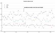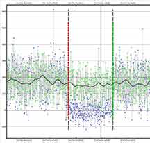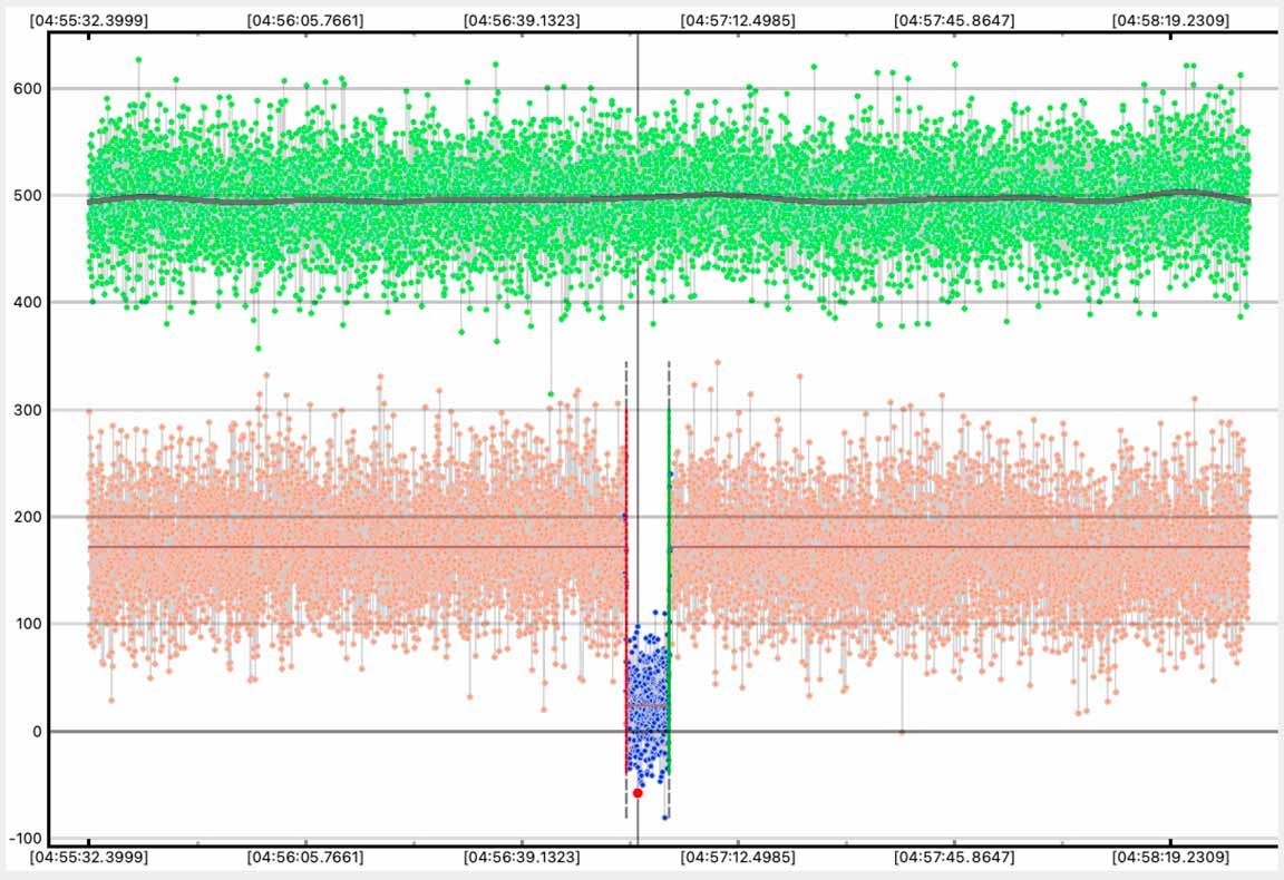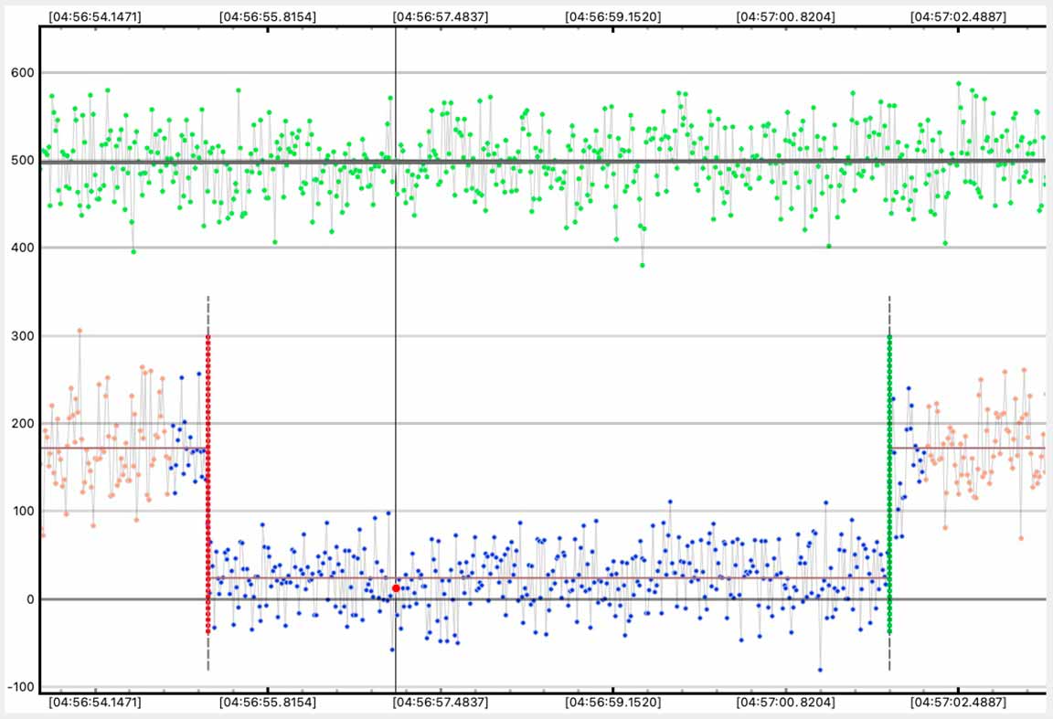 Timing accuracies improved by about 10-20% for 1, 2 sigma limits. 3-sigma limits on accuracy were worse, but not a lot - to be expected if the point-to-point range is larger given it's 1x and only even or odd lines counted..