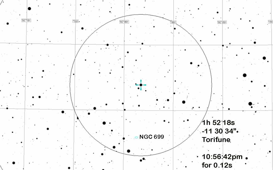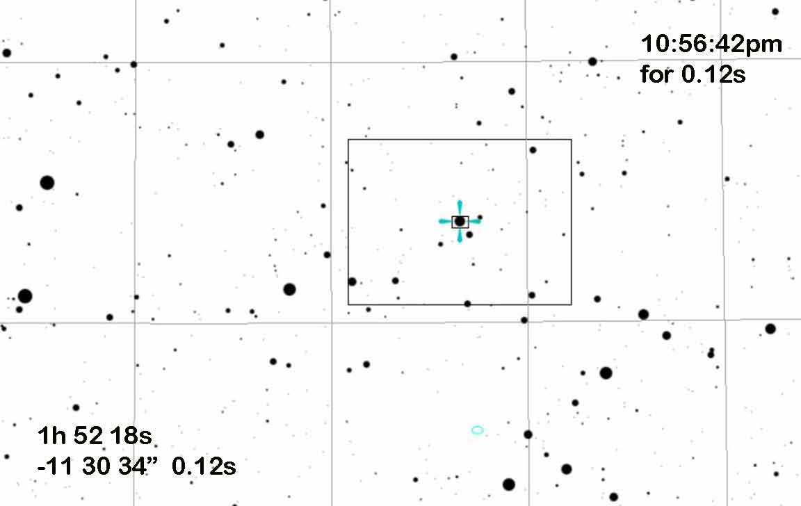 This is a very high value asteroid target. Tiny, but a potential Earth Hazard as it's a NEO (Near Earth Object). It will be the target of the Hayabusa 2 Spacecraft Mission, which will do a flyby in 2026 of this object, so an improved orbit and detection of any possible moonlets is extremely important. The path enters the US at Nogales, AZ and tracks steeply NW up through SoCal deserts and exits into the Pacific Ocean at Garrapata State Park south of Carmel on the Big Sur coast. MIRA-OOS is just outside the northern limit of the tracks laid out by David Dunham, the last estimated uncertainty limits. The duration is only 0.12 sec for this 0.50 km asteroid, but for a 9th magnitude star, this is quite do-able at 1x and 1/50th or 1/60th second time resolution. A central occultation at 1x would give 5 or 6 points inside the occultation.
