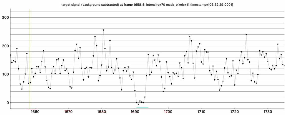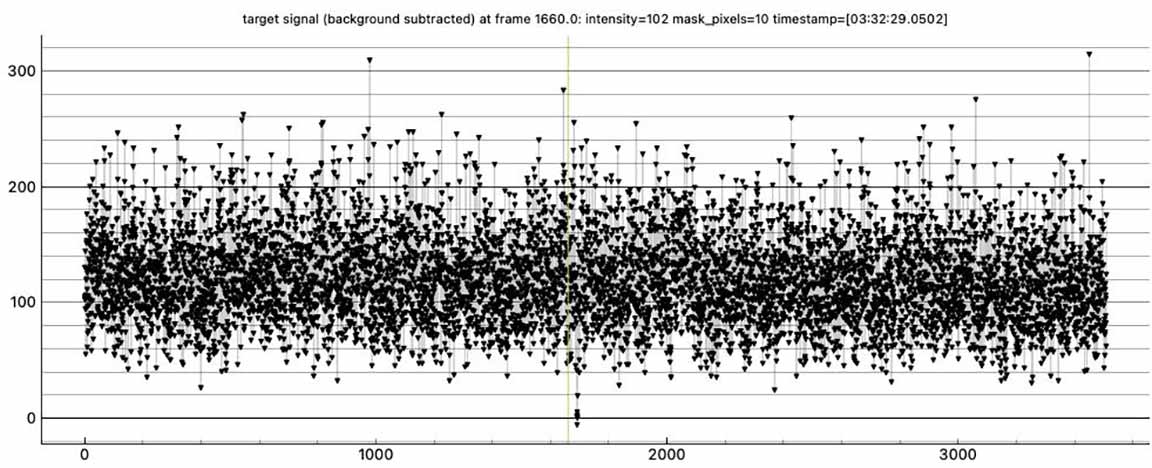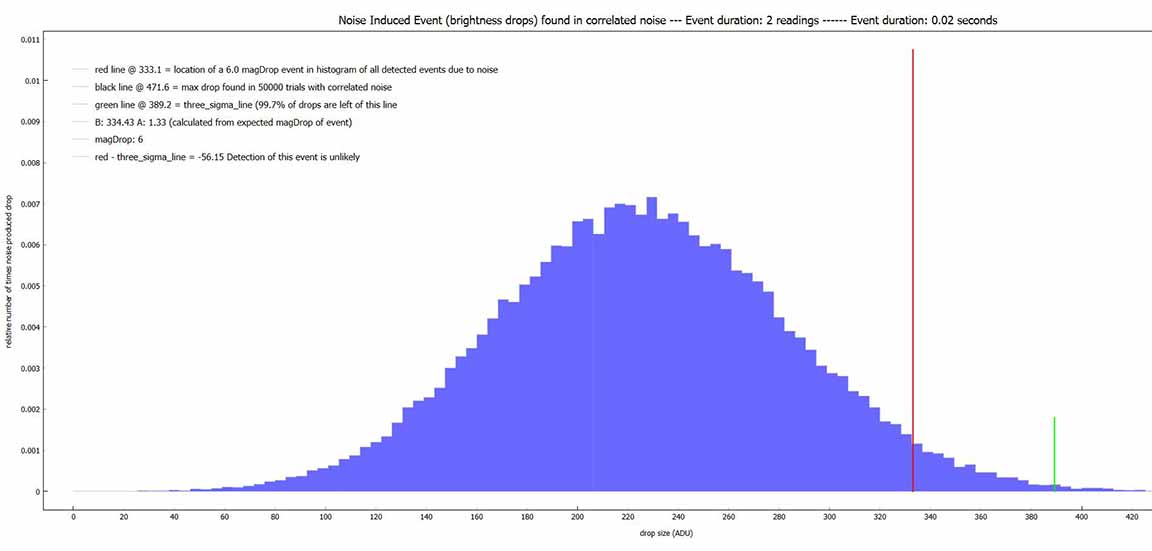 No probability in PyOTE was associated with the depth of the occultation, which was 9 magnitudes for this very small asteroid, and yet PyOTE kept putting higher detection odds on other drops during the recording which were quite clearly only partial drops but happened with 3 consecutive similar values likely noise and within the envelope of noise distribution.