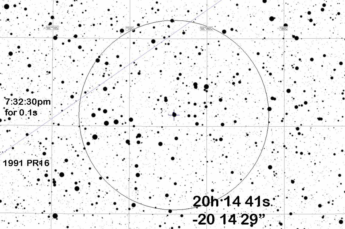 I got a 0.1 sec event for 1991 PR16, at 1x from the Moran lake parking lot, very close to the predicted center line. To avoid saturation I turned gain down to 34. There was a lot of flicker at 1x, I suppose from being so close to the beach, but I got a distinct 6 integration event even with the noise. NIE sigma distance 27.0.