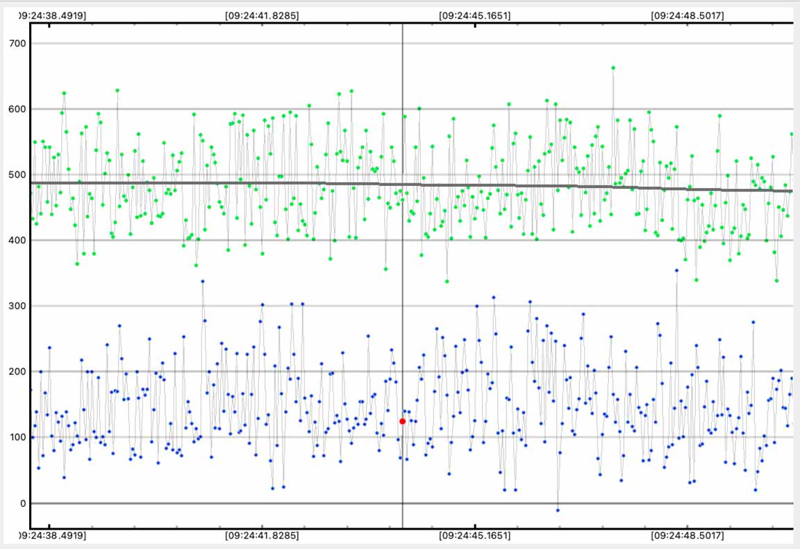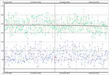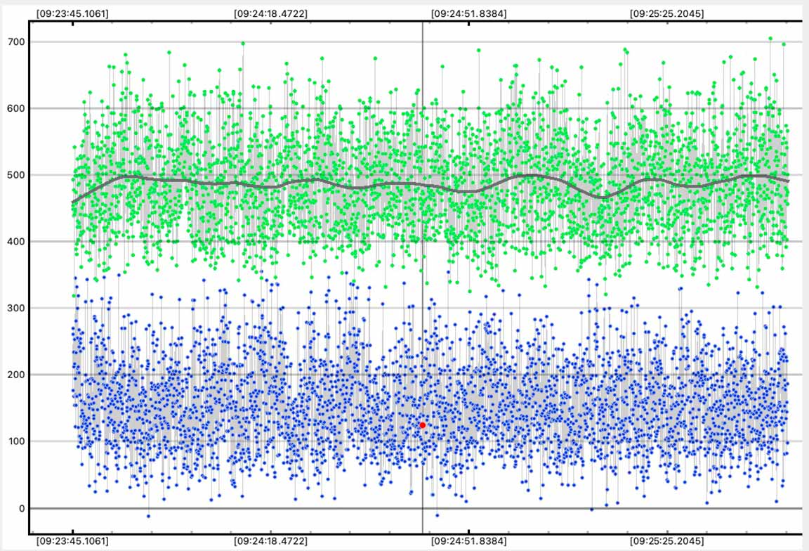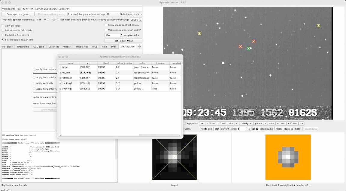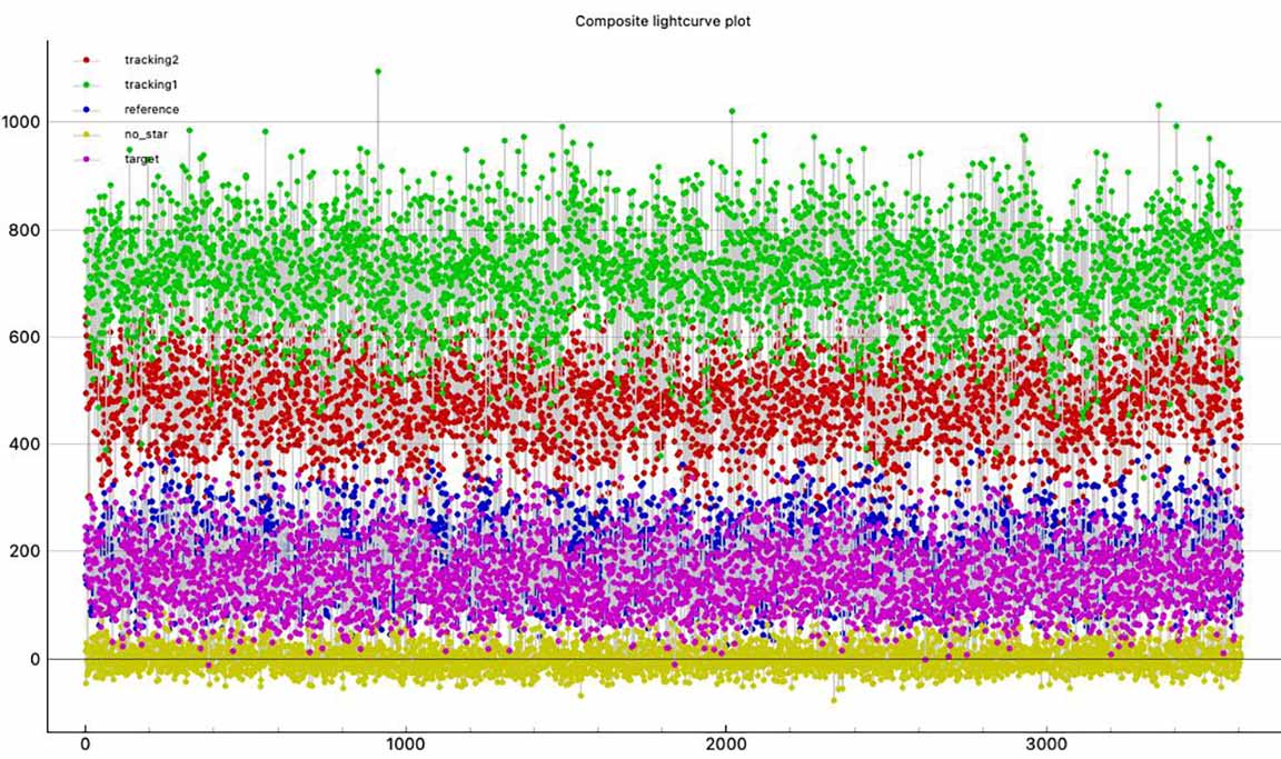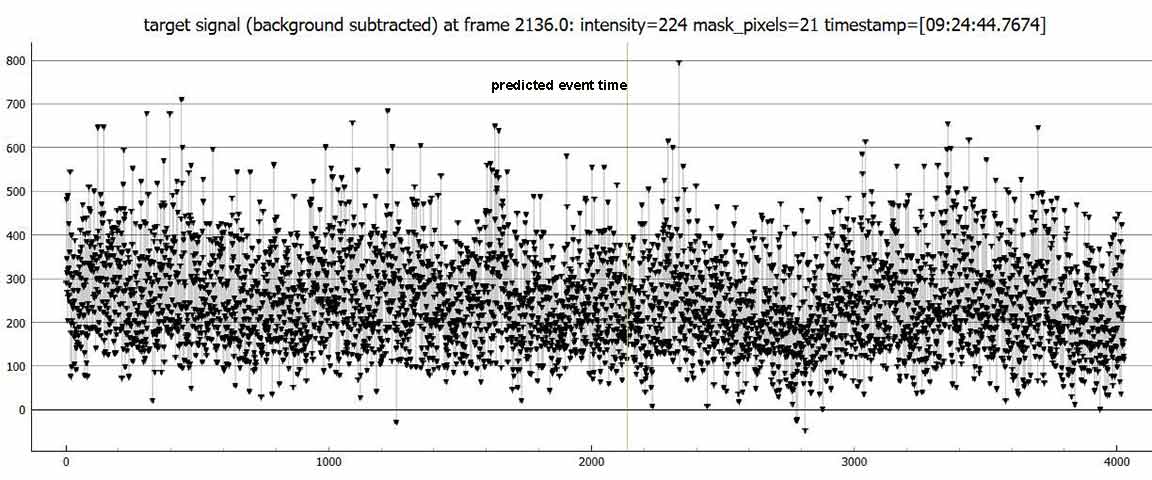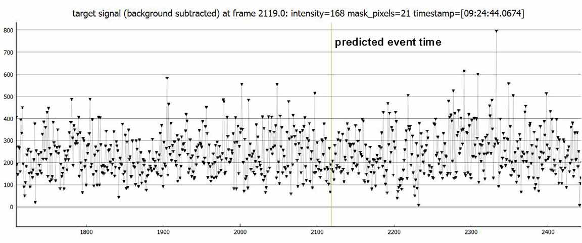I recorded from the carport, at 2x. Clear skies, got a good recording. Looks like a miss as I watched. Recording had many speckled pixels. I believe I had too high a recording level and should have reduced contrast as I learned to do later, and I'd have probably gotten a cleaner recording. I don't see any evidence of an event. Kirk had a miss from a few miles away. Mine looks to be a miss also. I was not able to use a reference star. I tried two, but their light curves have too many flaws to be usable for purpose, so I did not do a reference star. I'm submitting this as a "miss".