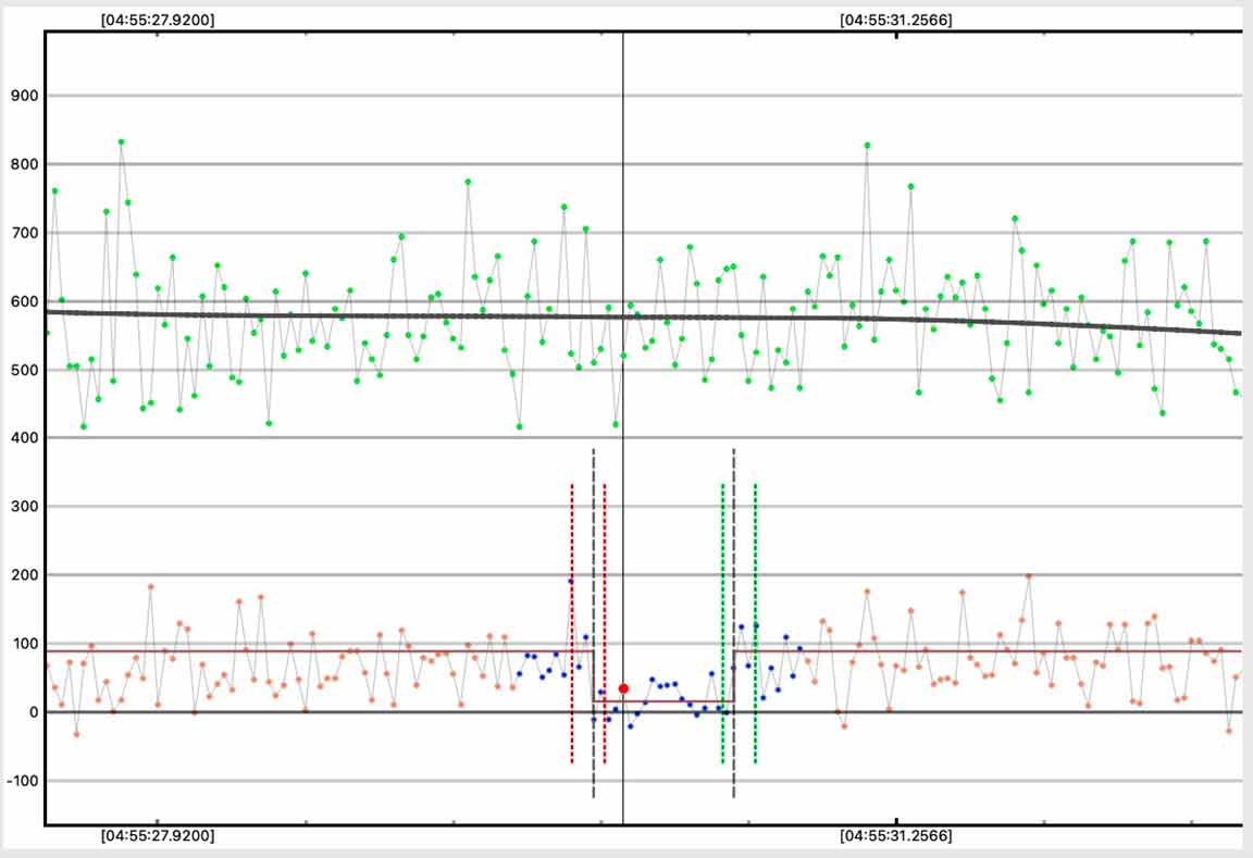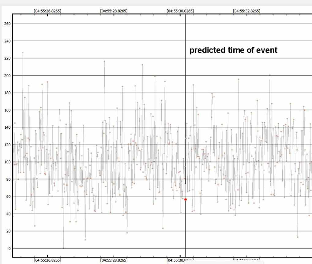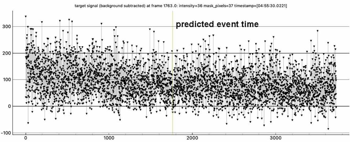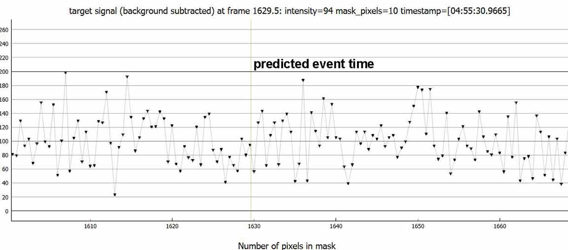 I got a 0.63s event at predicted time for Mitaka, 2x behind the restaurant on hwy 17 summit. Target curve was noisy, but it got a 5.2 sigma NIE result. The fog was coming in as shown by the tracking curves but it was thin enough to show the event. The max predicted was 2.43s, so I must have got the southern edge and you two were probably too far south.