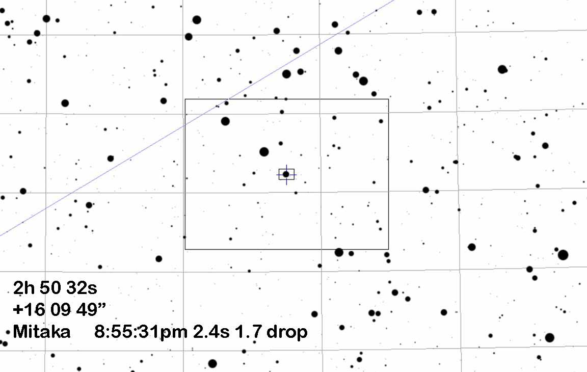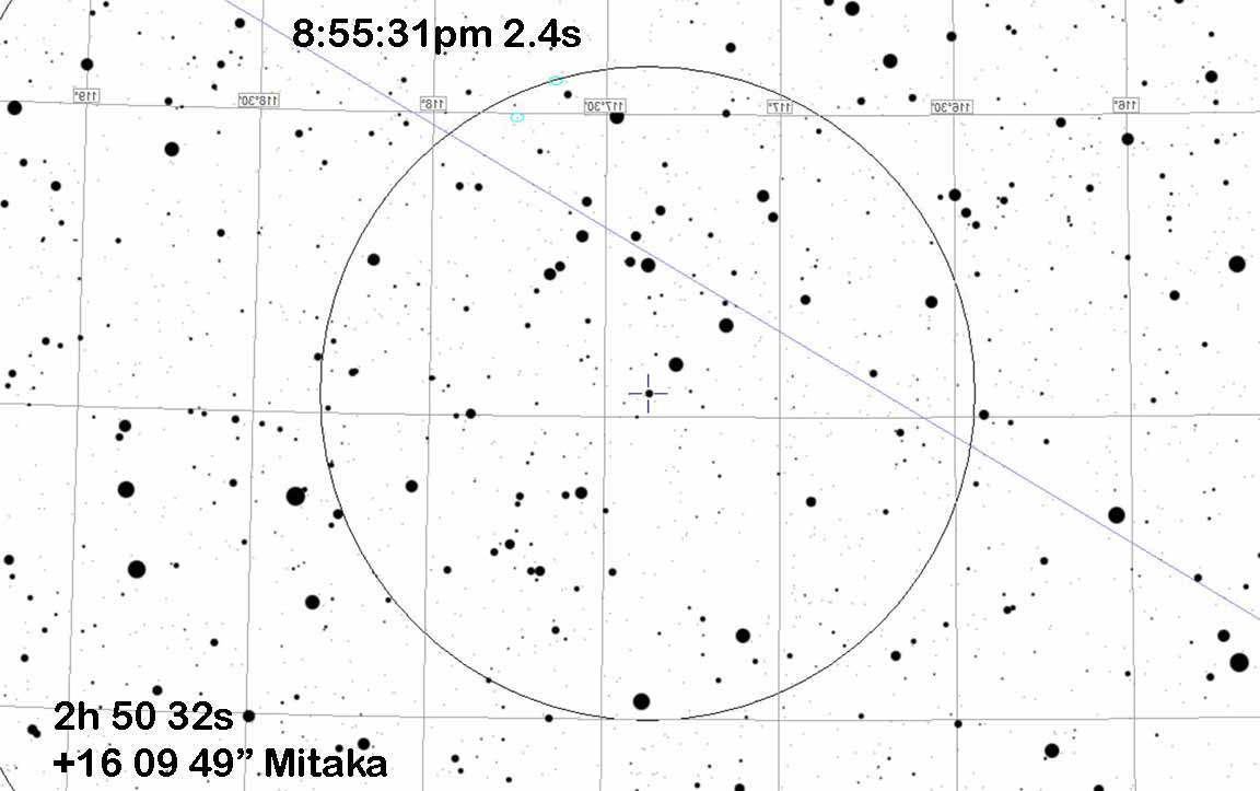 This is a bright, easy, long event for all of the Santa Cruz Mtns in SC County, but not for Santa Cruz itself. It's suitable for short integration and moonlet hunting. I set out an icon at Mtn. Charlie monument at Hwy 17/Summit, a spot I've used several times in the past. It has good horizons in the N, NE, E, SE, and S. and easy to drive to. Karl will be trying it from home.