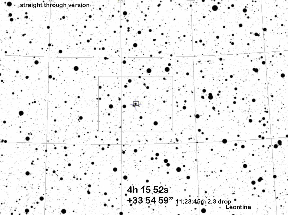 This was Astro 8A night; the last night students could get the raw picture for the astrophotgraphy project. That had to be first priority. There were 4 students still needing to get a photo, and it was slow going getting the Gemini/C2A connection to happen as it did successfully the prior week, and getting the 4 sets of photos took until just a half hour prior to the event. I then tried to get the 12" to navigate to the target, but this requires far more work than I had hoped. So I instead rushed out to engage the 8SE. I did ID the star field, despite the worry over the 81 degree altitude pointing accuracy, but inserting the 0.5x adapter and Watec I could not ID the stars. I had little time to do so, and the event was missed. I'll chalk this up to a valiant attempt but failed due to forces beyond my control (teaching duties).