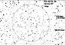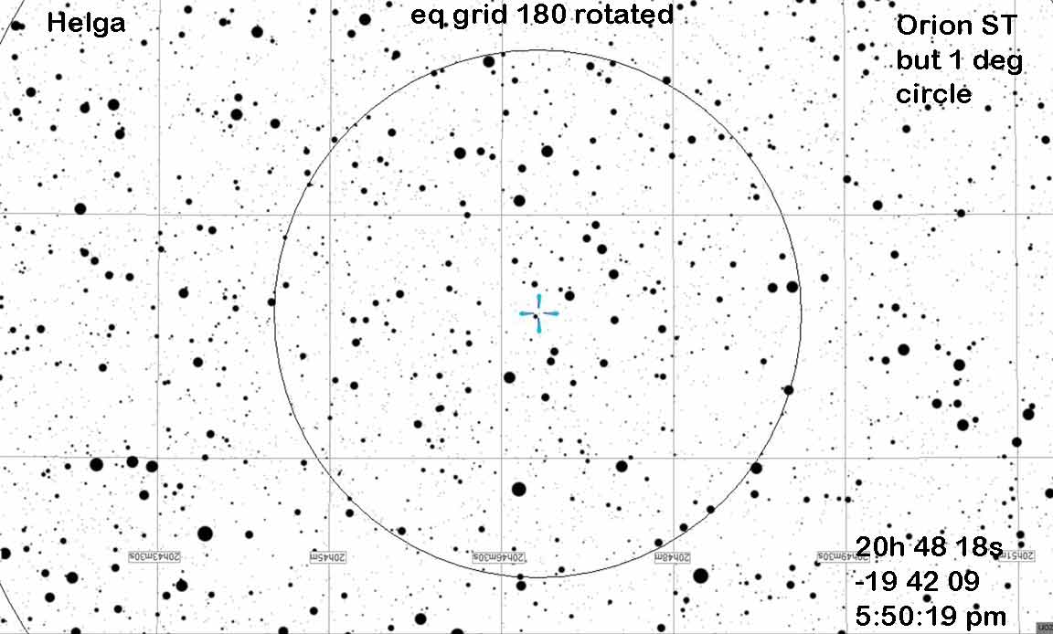 CabObs 12" scope Orion ShortTube TV screen view, but cropped top and bottom to keep scale suitable for plotting UCAC4 stars Sides of this image should be about 2 degrees and match the width of the new Orion ST view with the double 0.5x reducers. Field was rotated 180 deg as should be true for west-of-meridian scope orientation. |