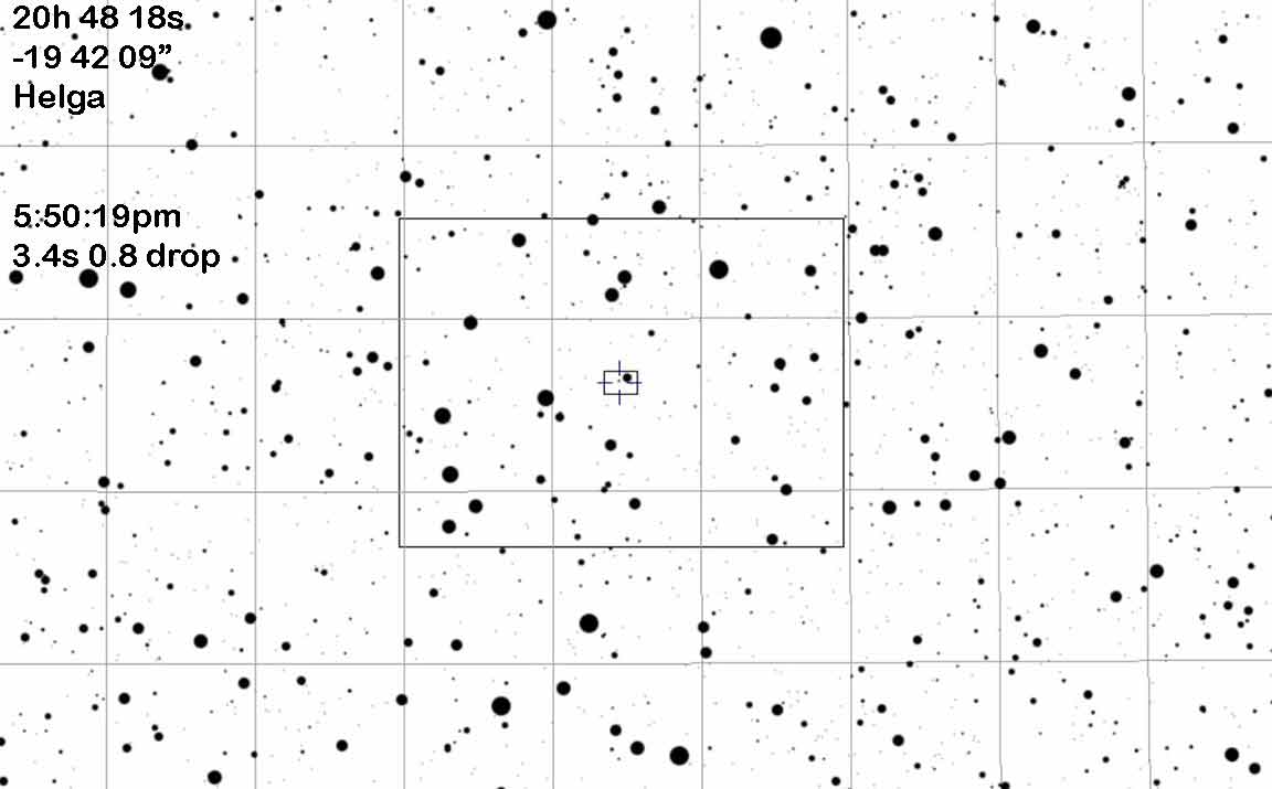 The target star is only a little brighter than the asteroid, and the drop is predicted to be 1.0 magnitudes for 3.4s.