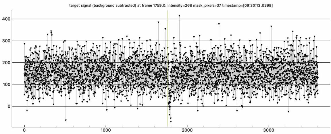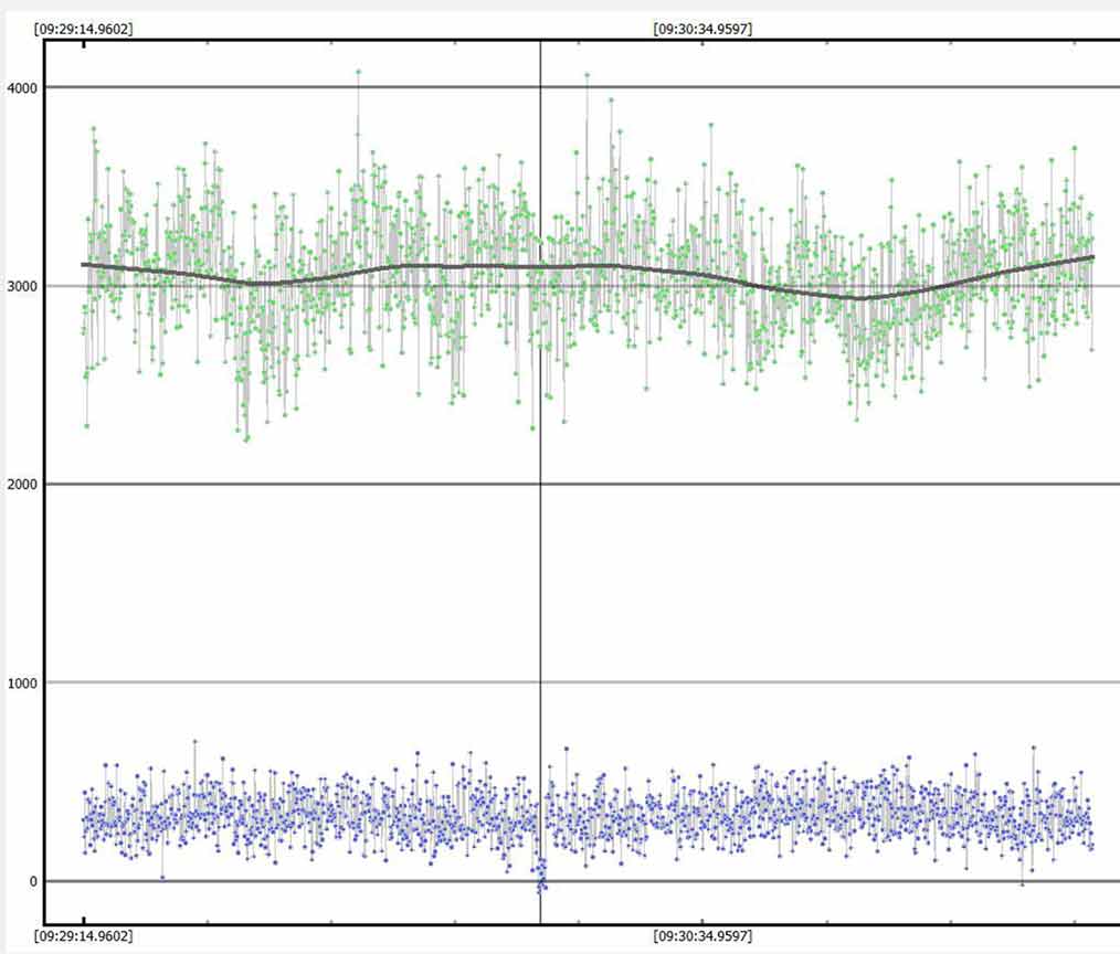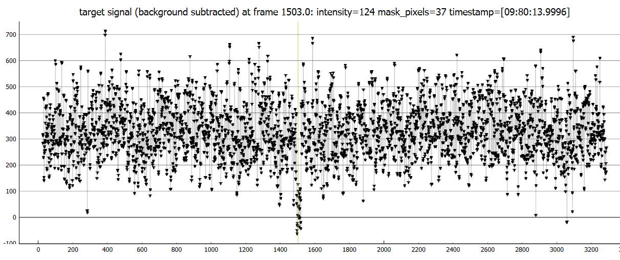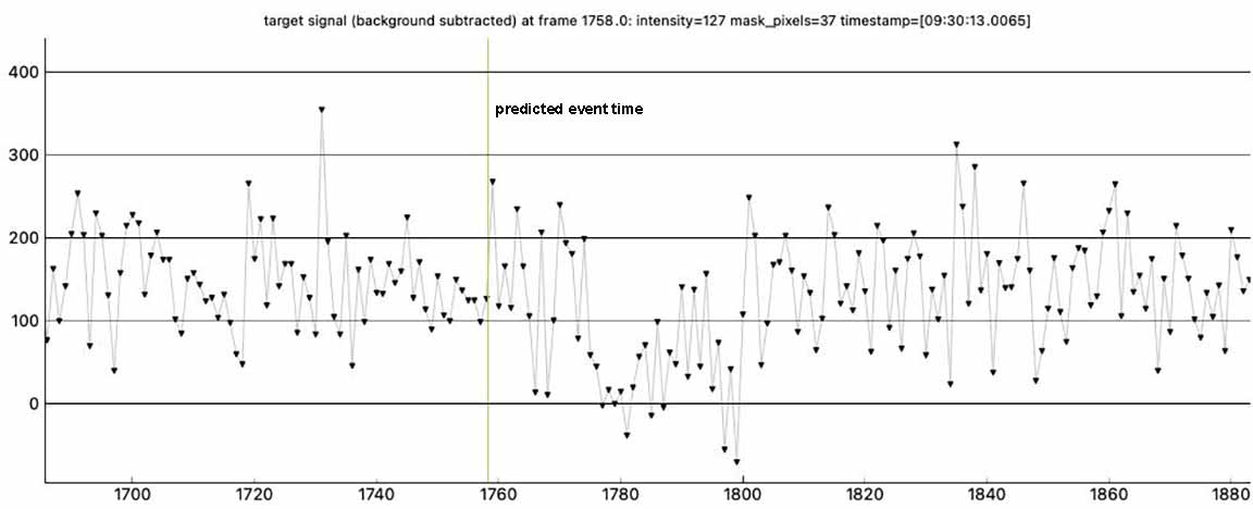 I observed this from a driveway about 1/3 mile above "the Berm", on left side of the road. Conditions were calm, very cold about 38F, and full moon. I observed at 4x setting, max gain=41. Got an obvious event.