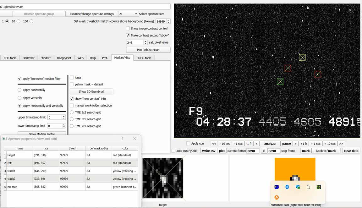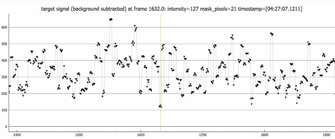 Zoomed in. I may try to re-PyMovie this and see if I can reduce noise, but it's already asking a lot, since the star is only 13th magnitude, in a moonlit sky. |