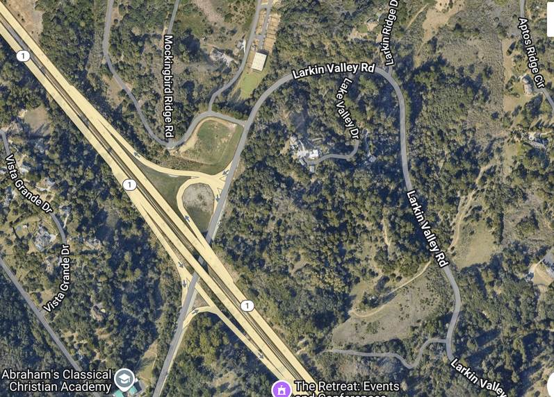However, if Kirk Bender if eager to join, and drive out separately, I'd suggest the corner of Moon Valley Rd and Larkin Valley Rd just off Hwy 1. I've driven into that field in the past to get an event, a couple of years ago. I plan to be in the cul-de-sac of La Selva Drive off Mar Monte Rd exit.