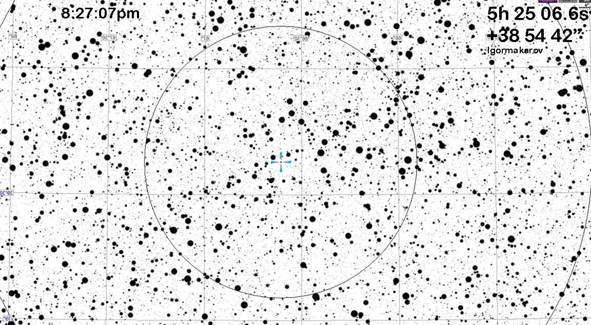 Alt=43, Az=68 in Auriga, in the center of the Pentagon
