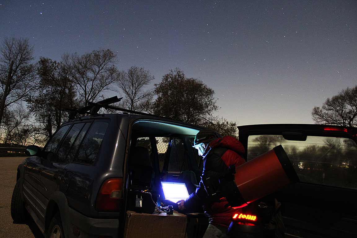 Got a successful recording in the wind, which was stronger it seems at the east berm of the levee of the Pajaro River, with the "airfoil effect" in play, I suspect. I'd wanted to be on the west side berm, but another car was parked there. Hard to deal with because the wind came directly out of the northeast, which was the direction of the target, 29 degrees up. I didn't use the dew shield, and I lowered the legs on the telescope to just one length, and used the damper pads under the tripod. Still, the wind was a real problem as seen on the computer screen. I turned on the recording a minute and a half early, and then used my down jacket and my body to do the "Batman Maneuver" to act as a wind shield as best I could.