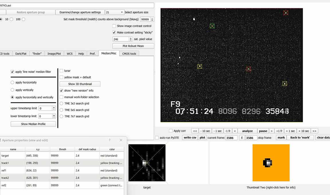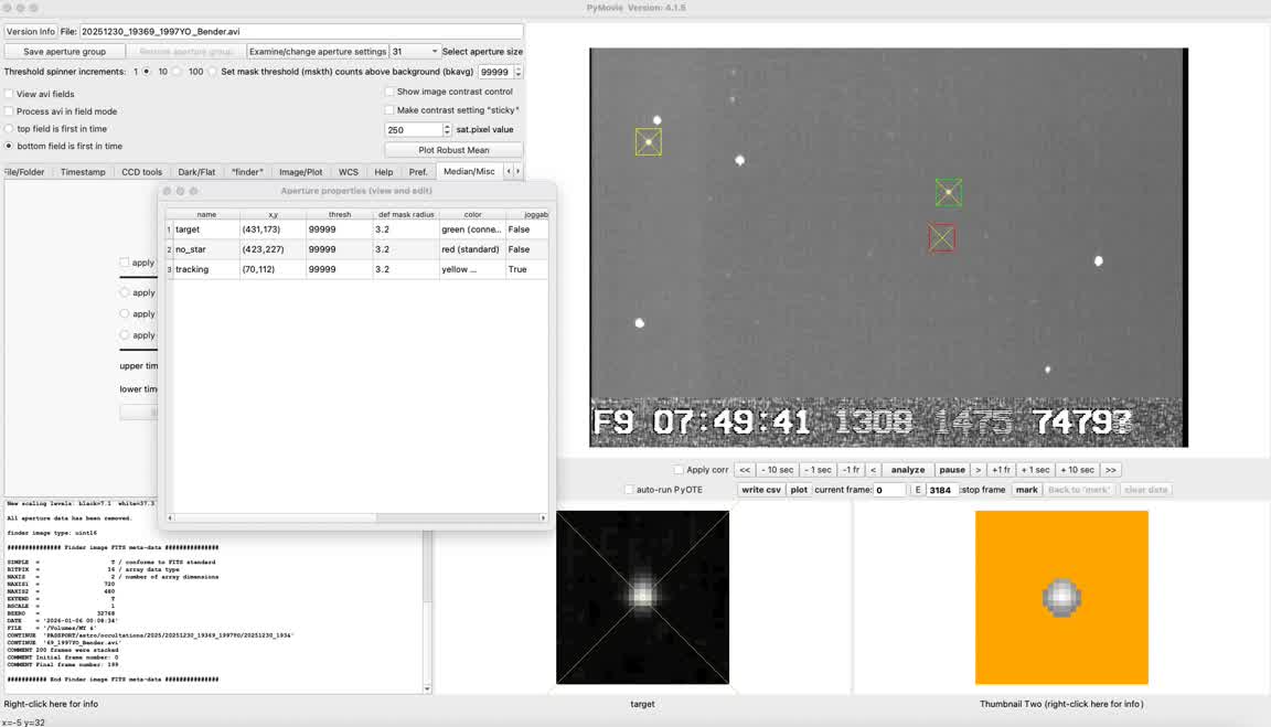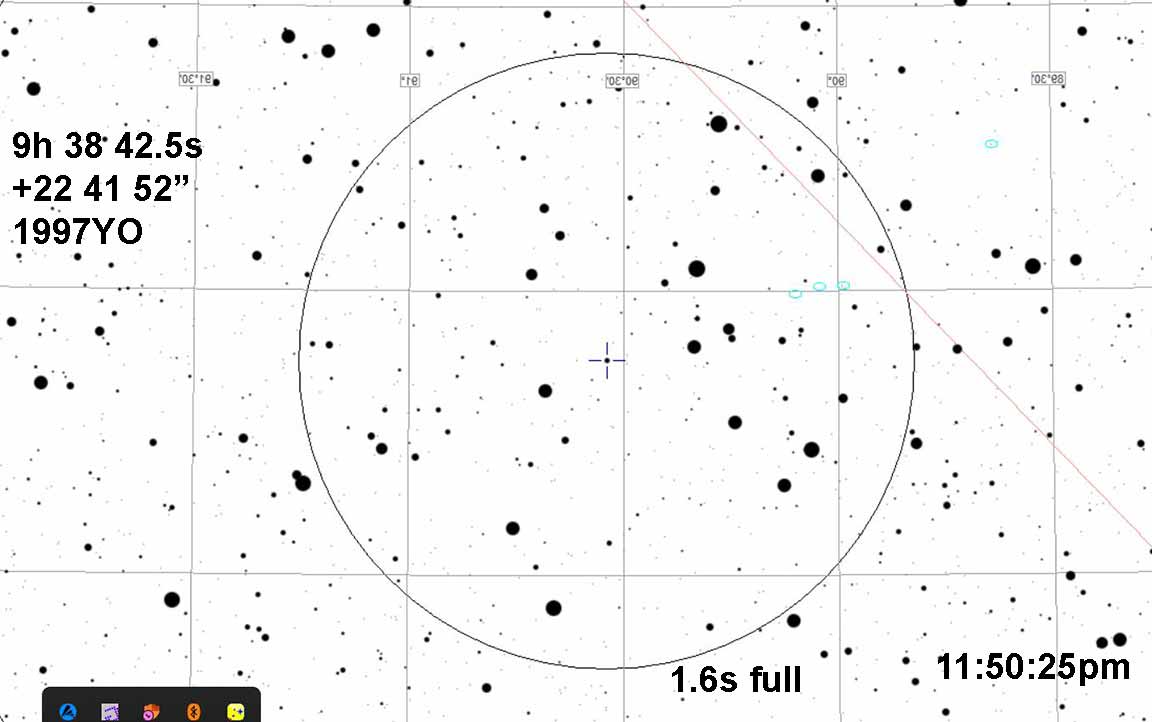 I got a 0.6300s event for 1997 YO at 4x on Dec. 30, On Swanton blvd by the Natural Bridges entrance. Duration is much less than the predicted 1.57s max. I wasn't that far from the centerline, and you got a miss, so the actual path must have been east of predicted. I had the Astrid setup between us at home closer to centerline on the 80mm, but target was too dim/noisy to tell positive or negative.