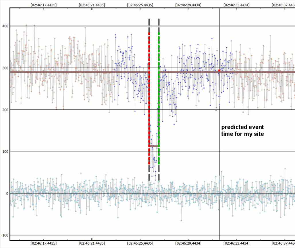 My IOTA VTI "went crazy" before the event, and got no data. It was likely a miss from that far north of the path. I may have caught the northern edge.