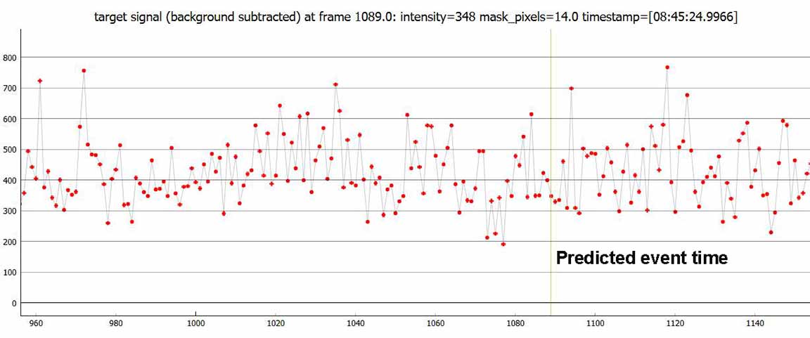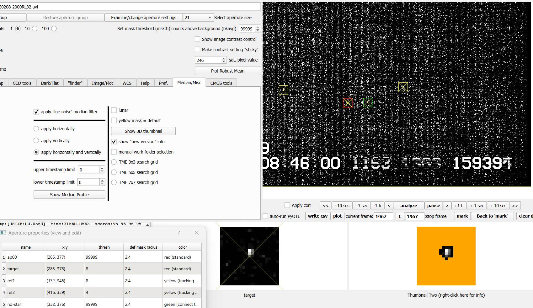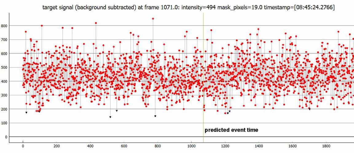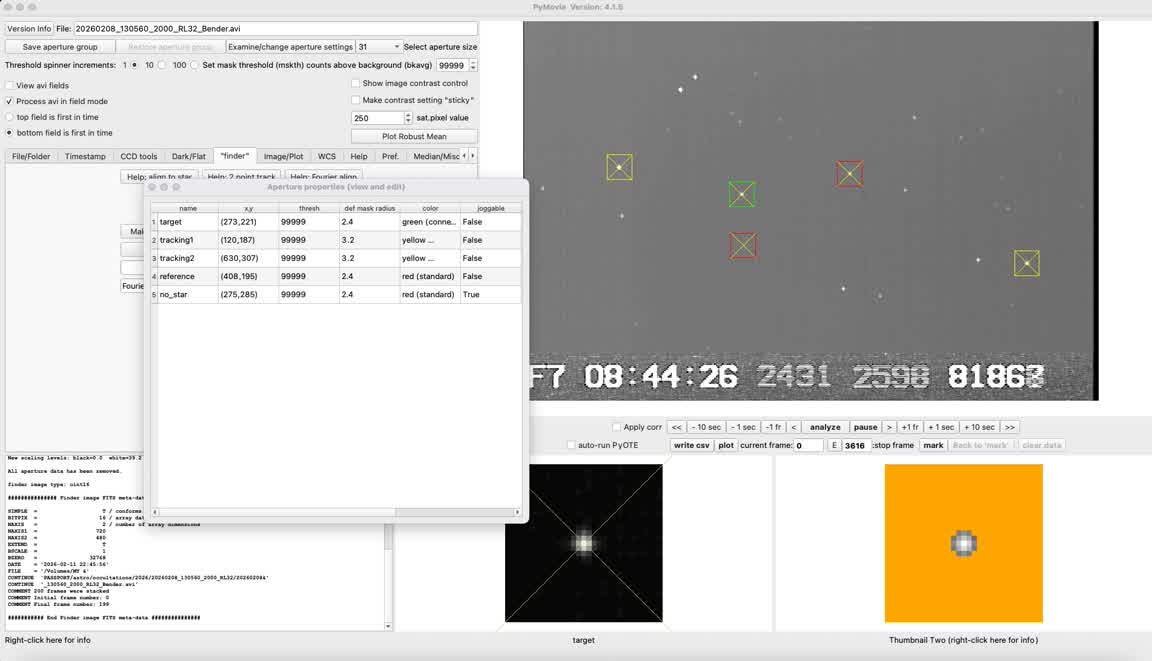 I only had time to glance very quickly at the OWc map as I realized skies made this possible after all, and wish I'd looked closer to see the path centerline was on the west entrance to Wilder, not the east entrance. I recorded this from the bike path/east side entrance to Wilder Ranch under clear skies. At setting 1x and the star quite easy to see. I did not see an event, but I've noticed in the past that an event as short as 0.2s or less could be missed live by eye/brain yet show up on the PyMovie light curve, so I will await reductions before judging.