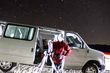 I expected to be driving through Panamint Valley 3 hours before the event, and with enough daylight to explore Mosaic Canyon and enjoy dinner with the TDRC group. But due to upexpected delays, Kirk and I arrived at this part of Panamint Valley at, as it turned out, just the right time to go ahead and try this event. I set Kirk at the little dirt turn-out visible on the GE maps, and I set up about 0.4 miles north of him, on the east side of the Panamint Valley Rd.