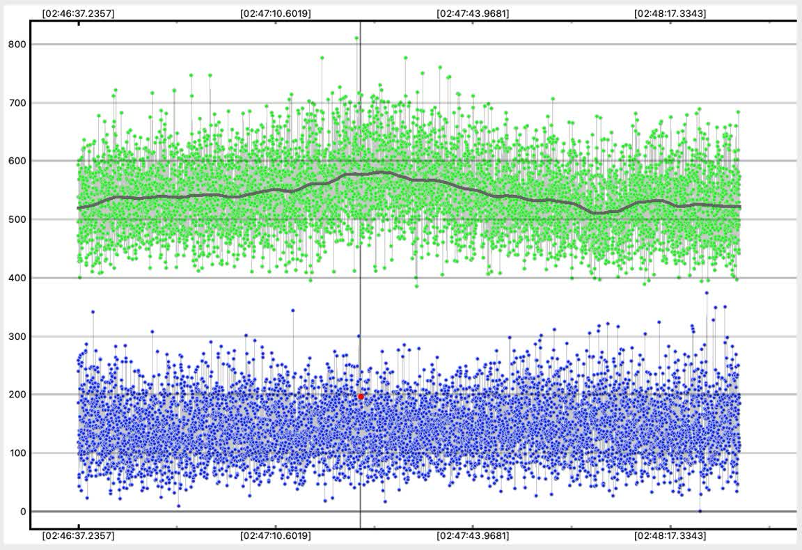 I don't know why, it looked clear in the target area of the sky, could have been dust or hard to see thin cloud that got thinner in the middle of recording.