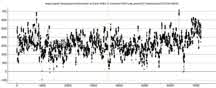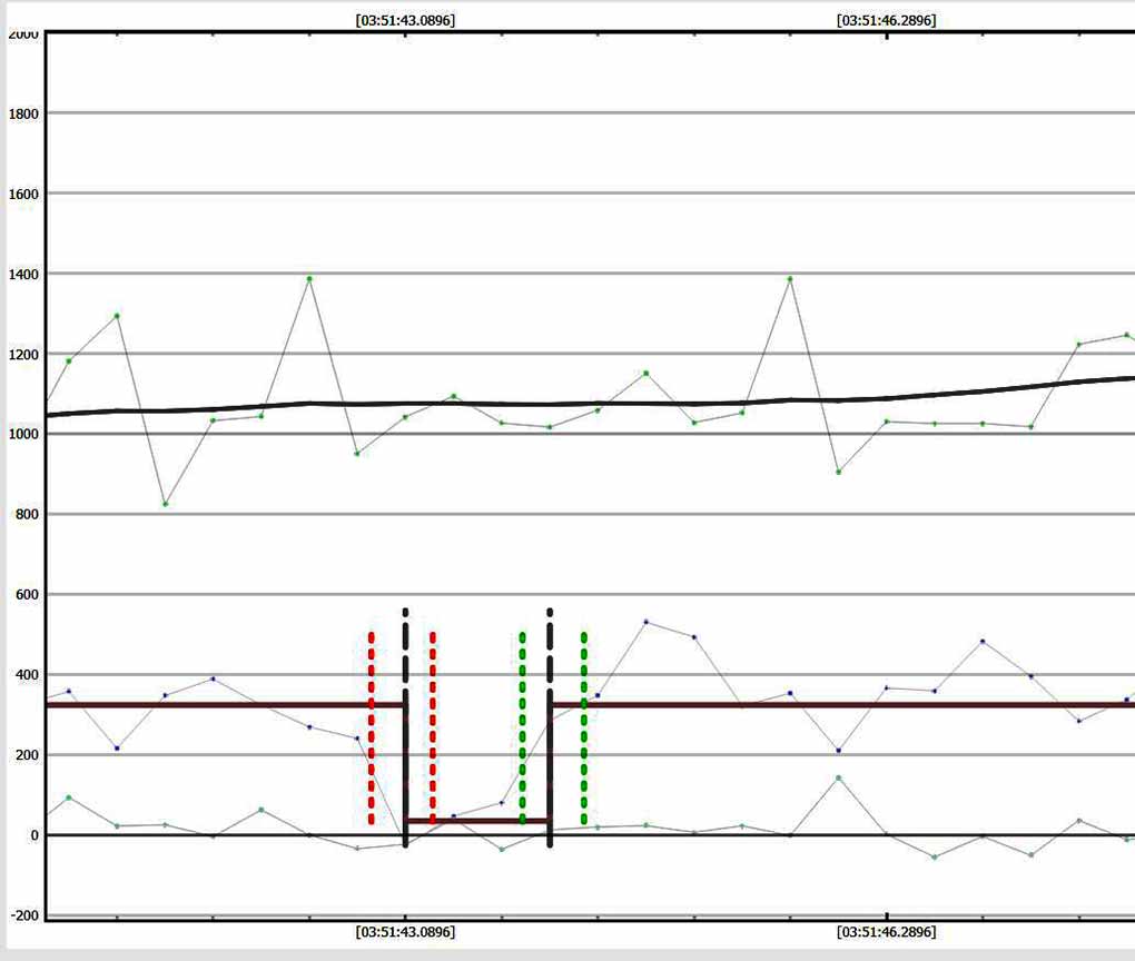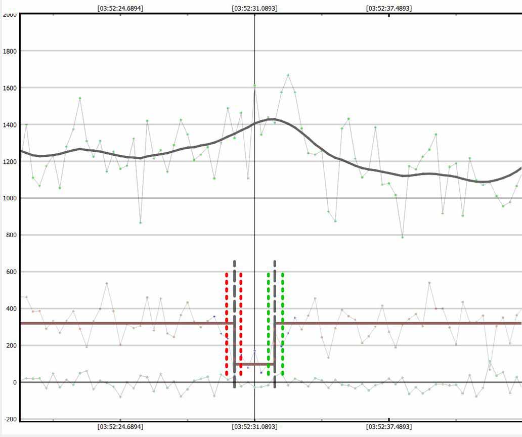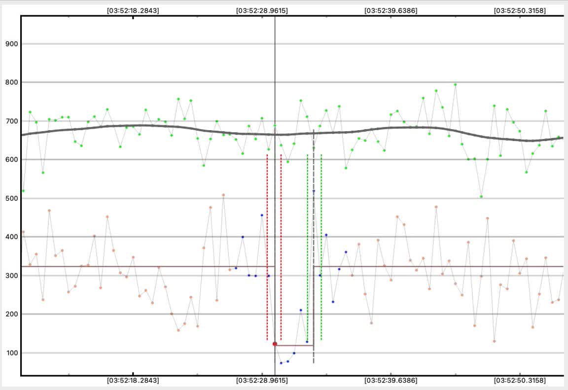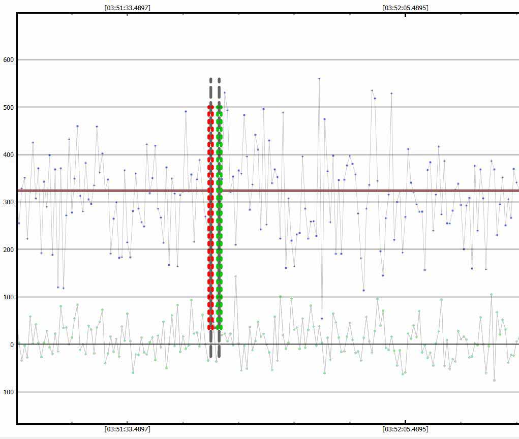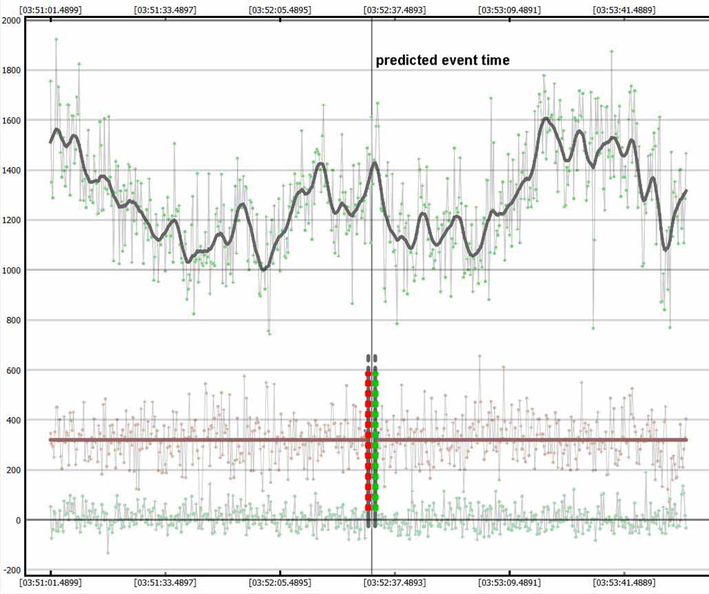 An apparent event occured 1 min 50s earlier than the main event. 3 consecutive low readings. I got intrigued, late at night, that this might be real, and got into calculations to judge its plausibility. I didn't do the most obvious observation data check until after this, the next day. But anyway, this was educational and so I am leaving this in the webpage.