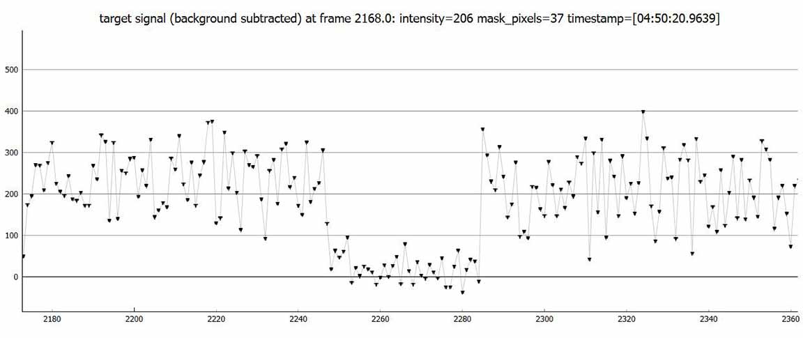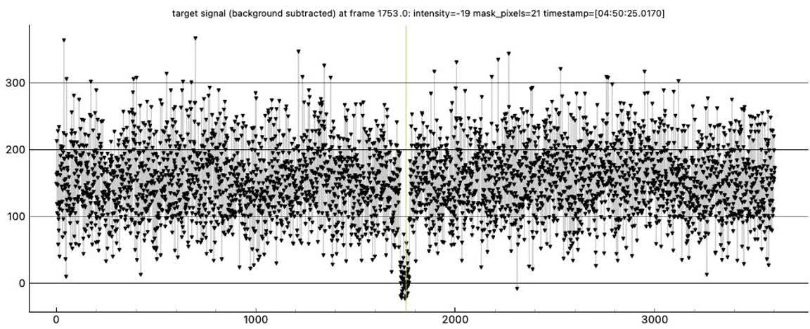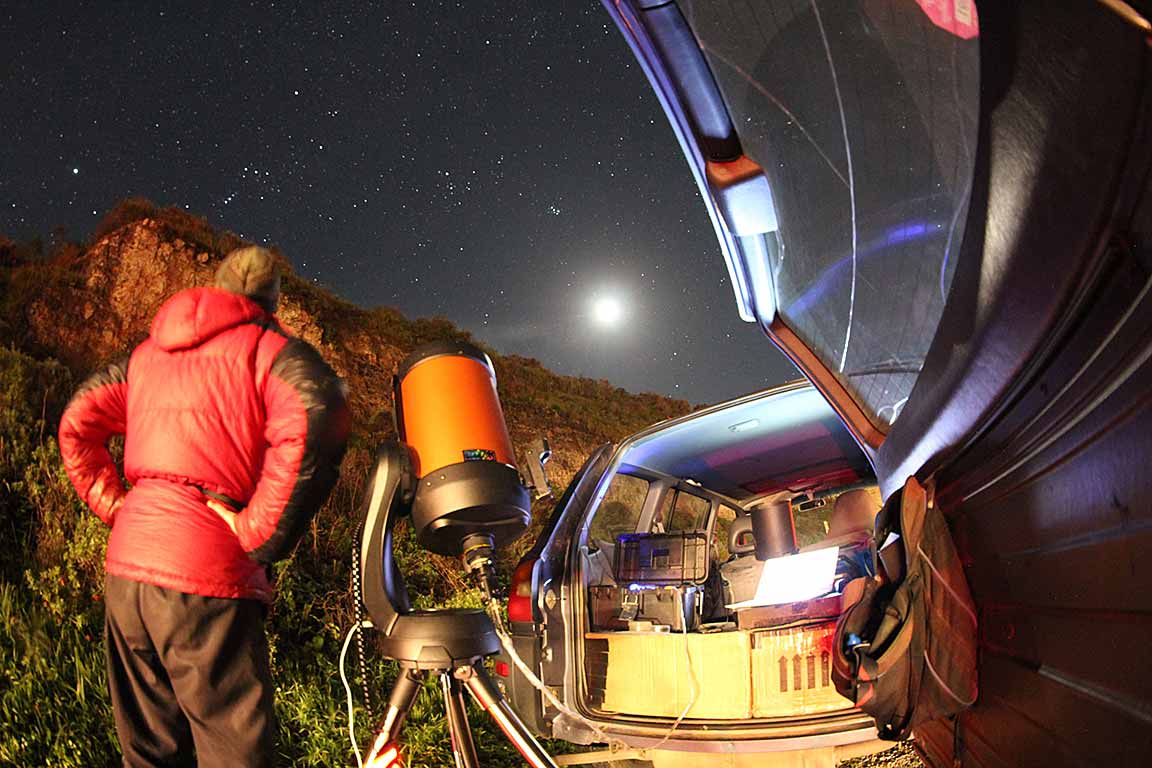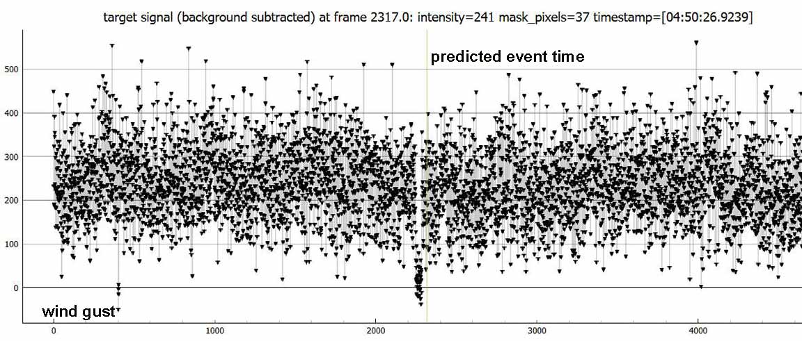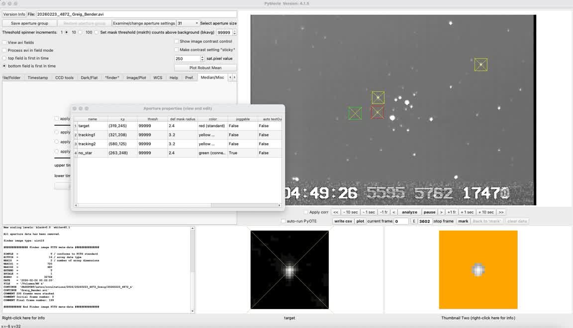 I got a recording at 2x from the BD beach parking lot. Looked like an event, on the order of a sec. The altitude wasn't a problem, the camera fit without the diagonal after the align and goto. That long parking lot was empty, then several cars of youngsters drove up and parked right next to me. They didn't bother me though, they just walked to a party on the beach I guess.I got a clear 1.5349 sec event for Greig, 2x at the Bonny Doon beach parking lot Feb. 22. There were scattered high clouds but it was clear in the target area.