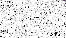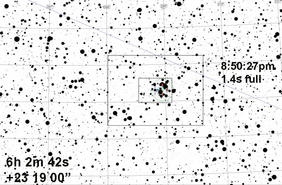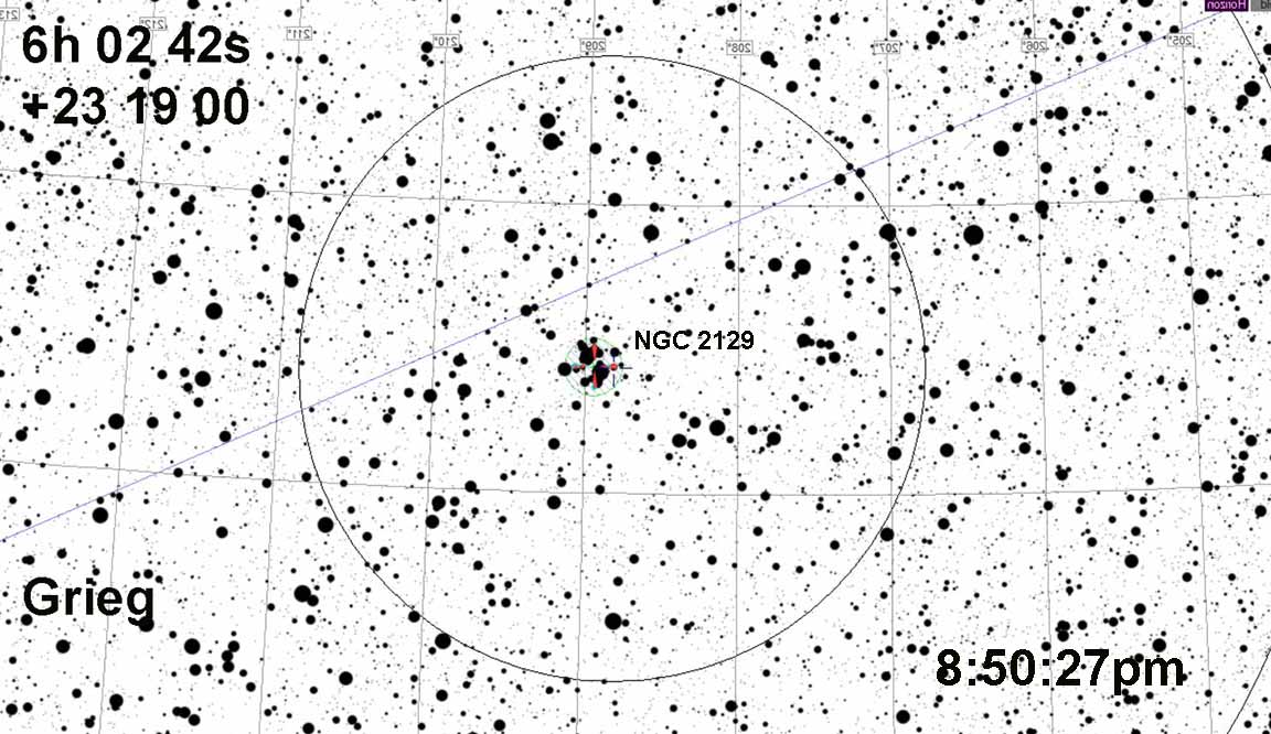 This event should be much easier to find than most - it's a member of the bright star cluster NGC 2129 in Gemini.