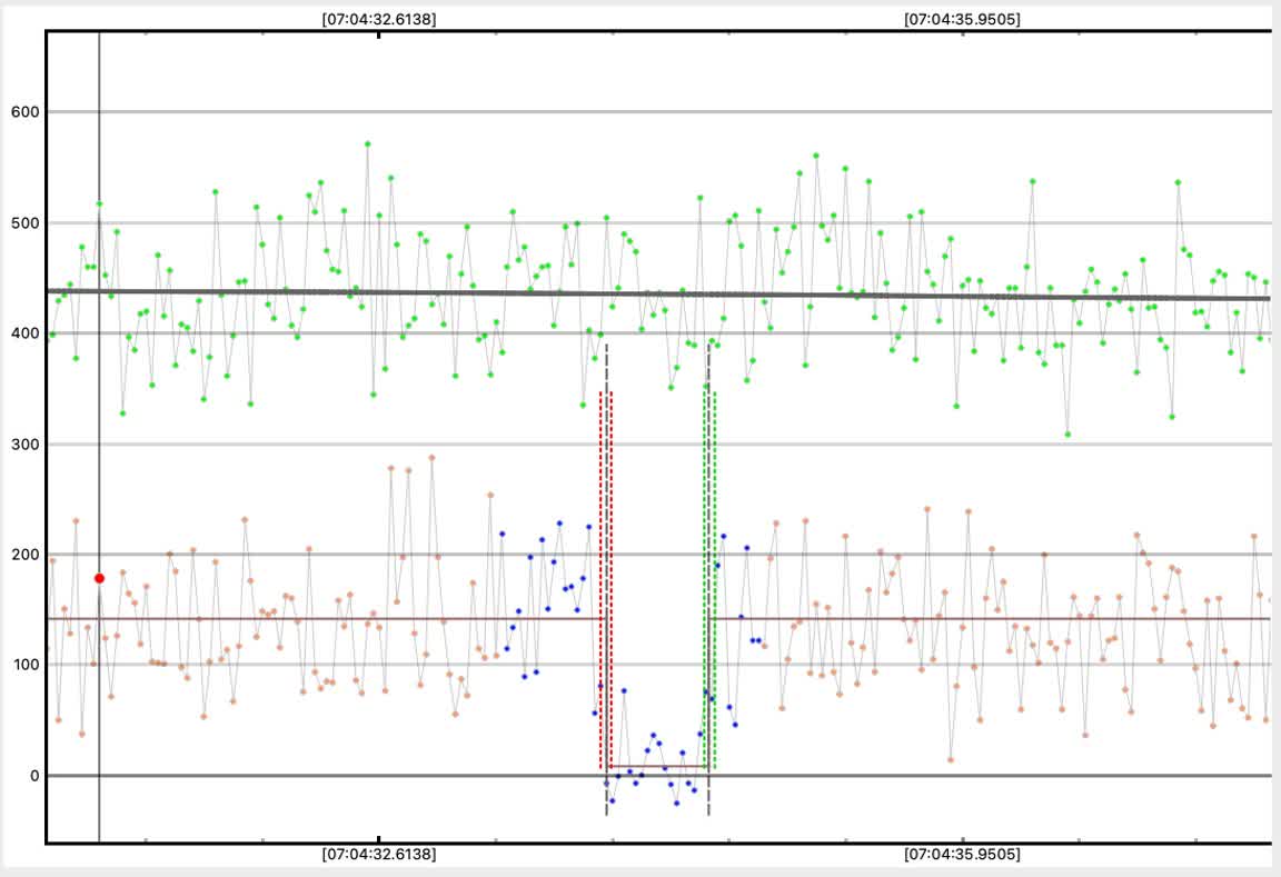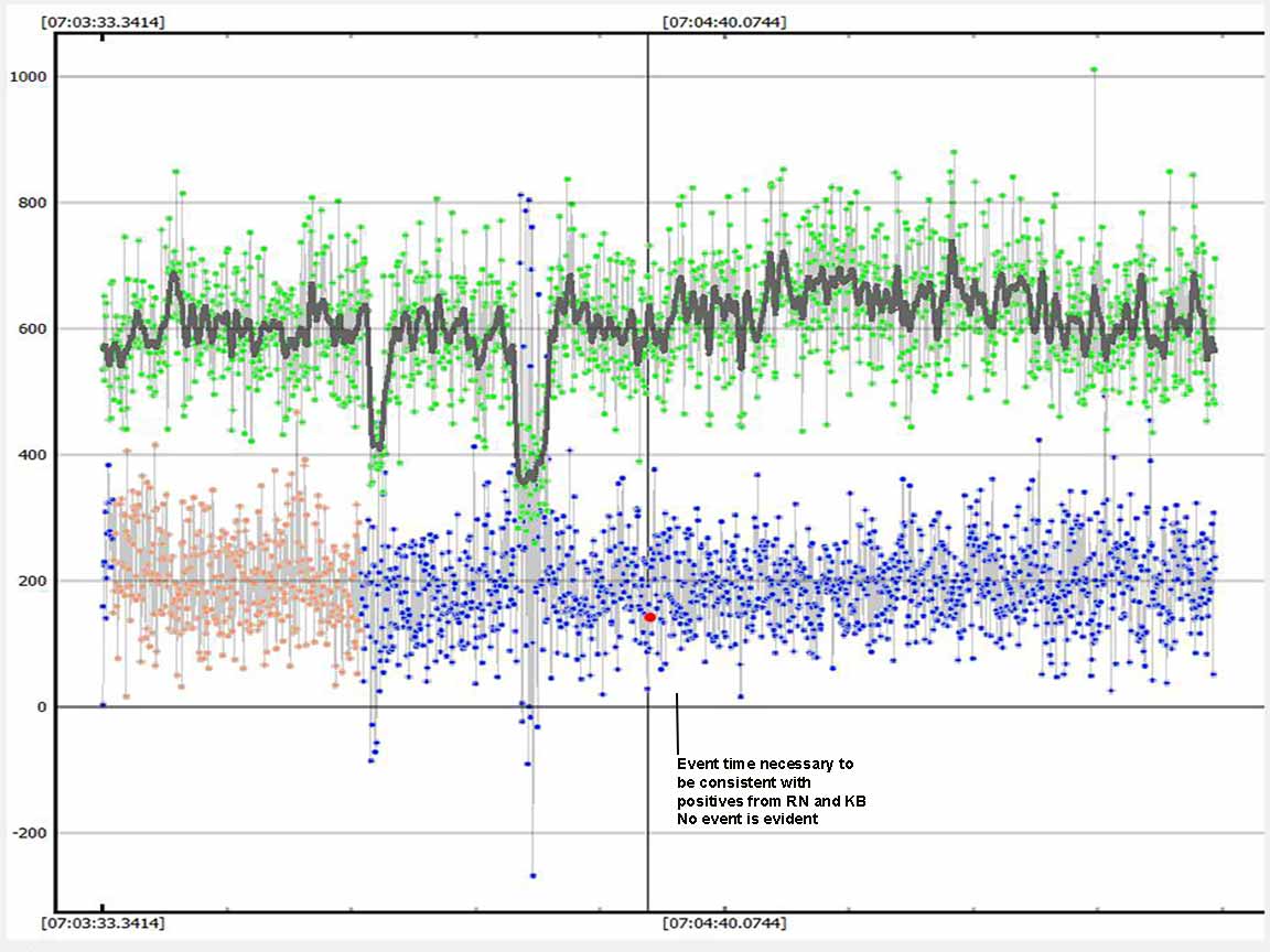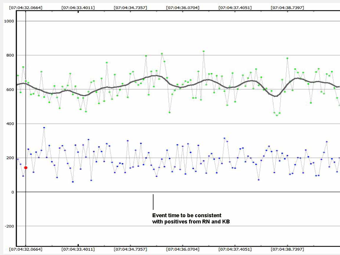 Not impossible Karl might have a very short event but it would have to center at 7:04:35 to be considered a possible valid event. If his dip is centered elsewhere the odds are very high it's just noise.
