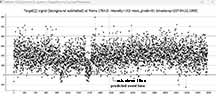 This is a bright star and very red. B-V = 2.0 magnitudes! The rank is mediocre but not terrible. The path centerline cuts right across one of my regular sites: at Santa's Village in Scotts Valley. It passes south of Karl, but given the rank, a shift to his location would not be that surprising. He's above the north 1-sigma line by a few miles. The centerline also goes across Quail Hollow Ranch in Zyante.