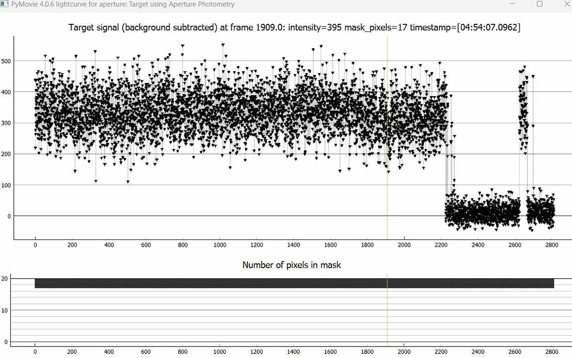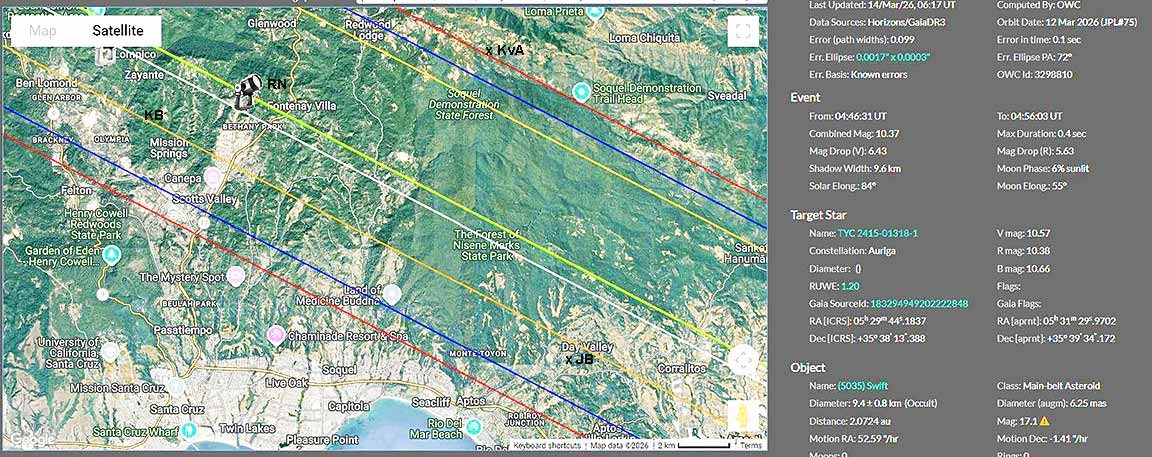 A bright occultation, lasting long enough for good cadence with short integrations. The path is through the SC Mtns. It's just before another bright occultation also through the SC Mtns